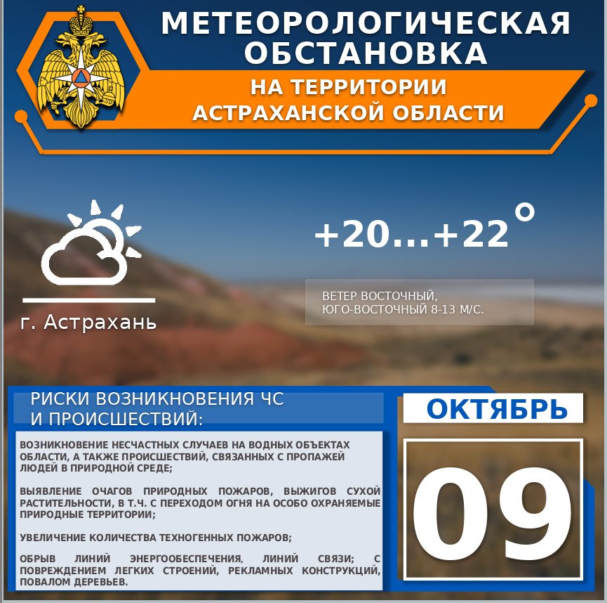 По г. Астрахань ясно. Без осадков. Ветер восточный, юго-восточный 8-13 м/с. Температура воздуха днем +20...+22°, ночью +10...+12°.