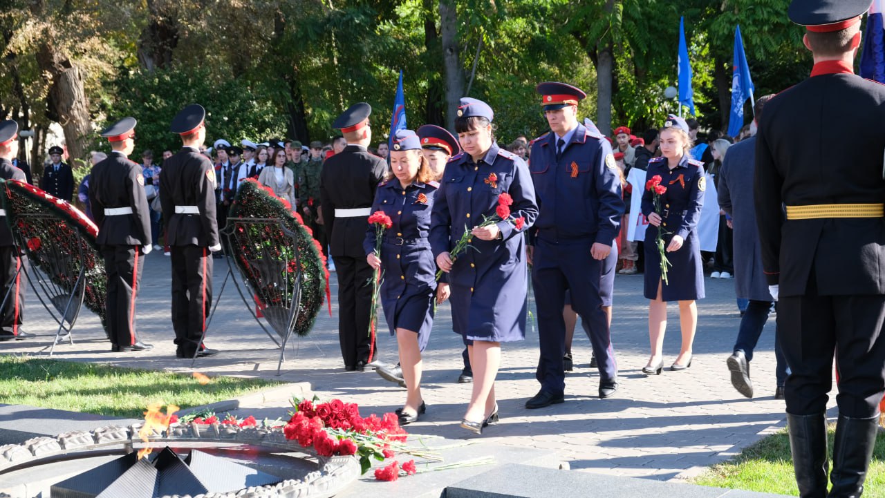 В знак памяти и благодарности сотрудники следственного управления возложили цветы к мемориалу павшим воинам.