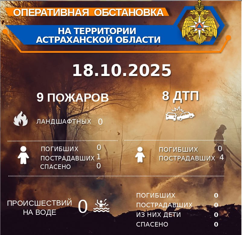 Оперативная обстановка на территории Астраханской области по состоянию на 00:00 18.10.2025