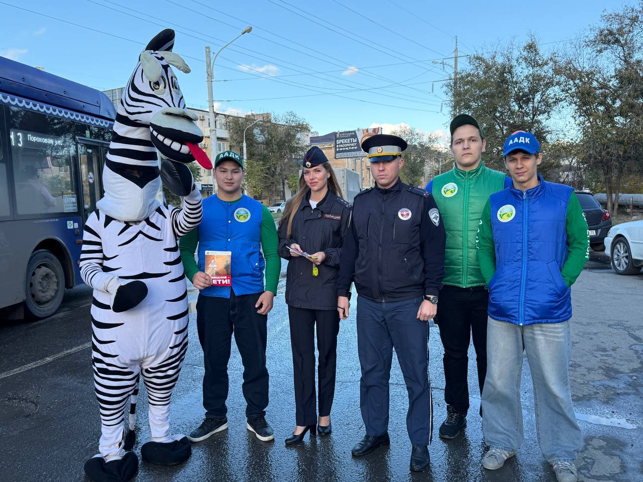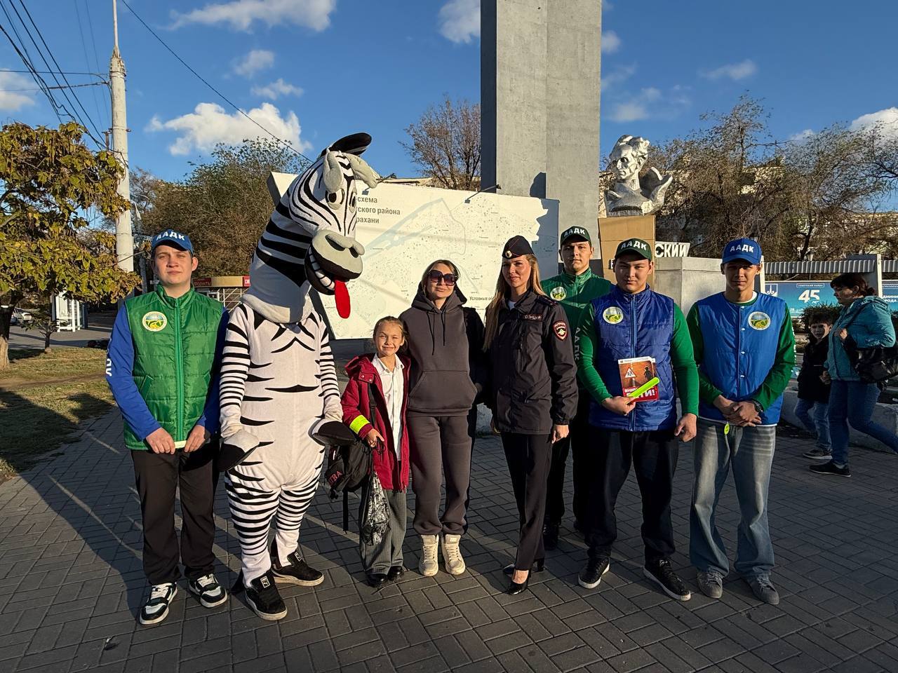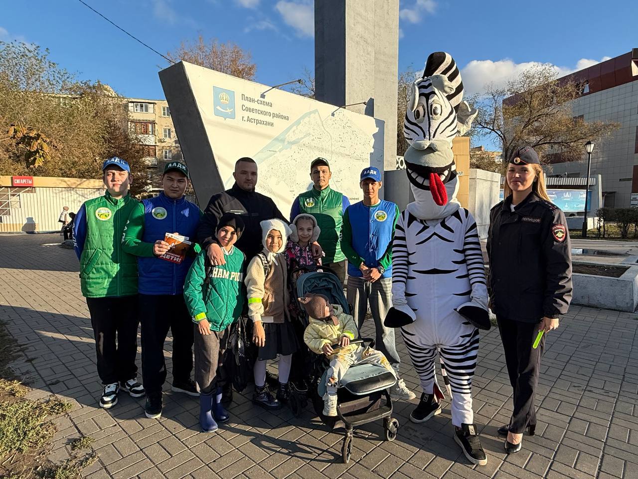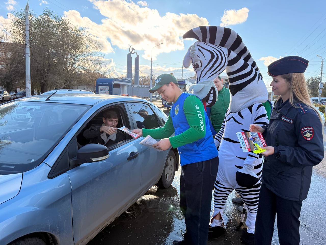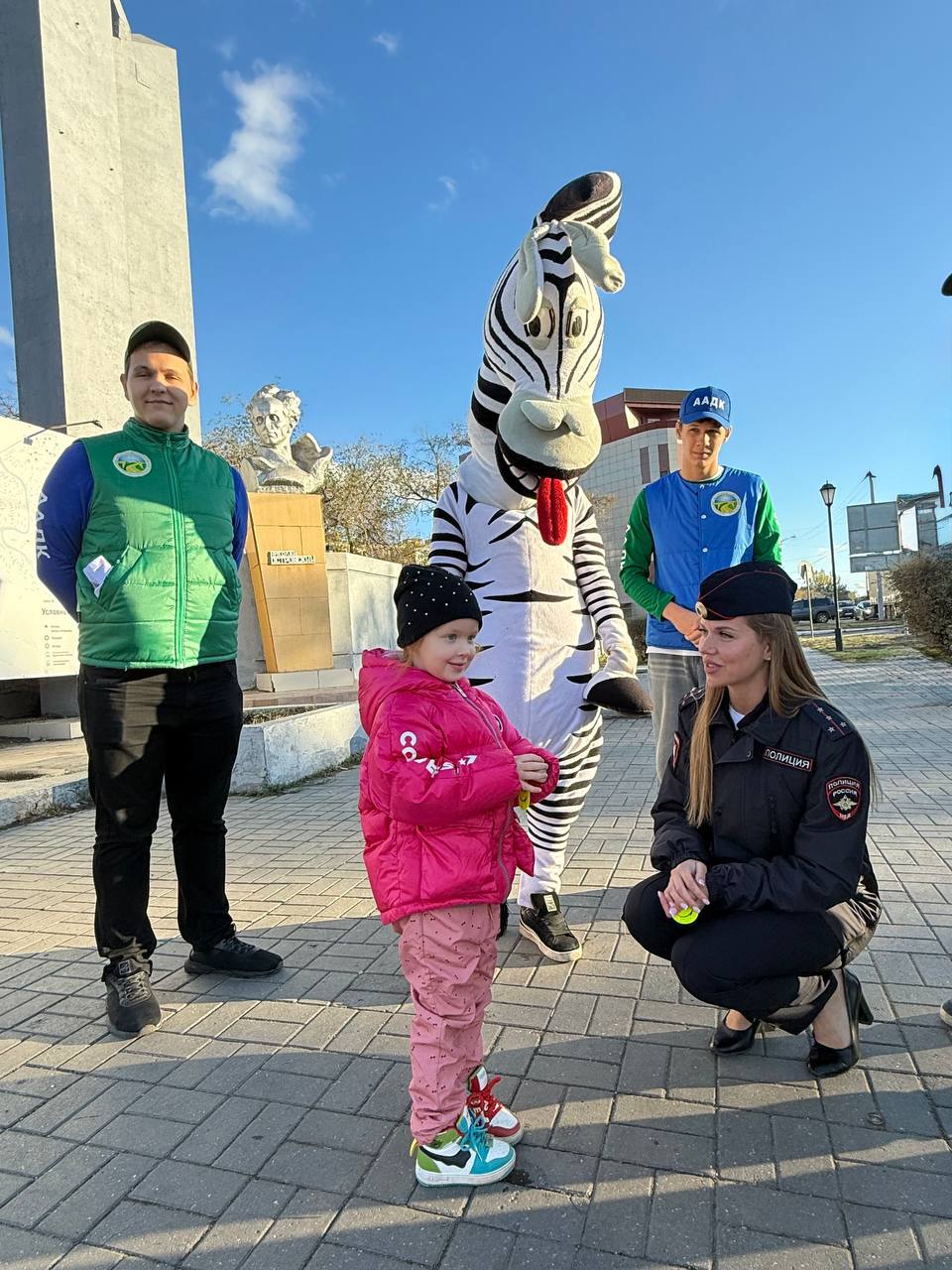 Госавтоинспекторы вместе с аниматором-зеброй напомнили пешеходам и водителям о правилах безопасного поведения на дорогах