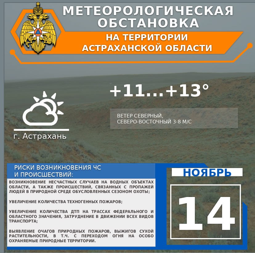 По г. Астрахань небольшая облачность. Без существенных осадков. Утром туман.