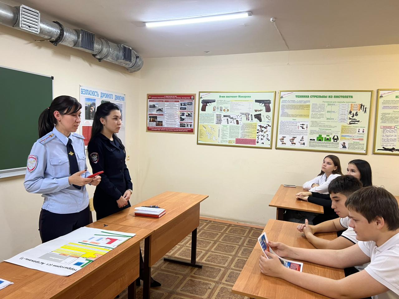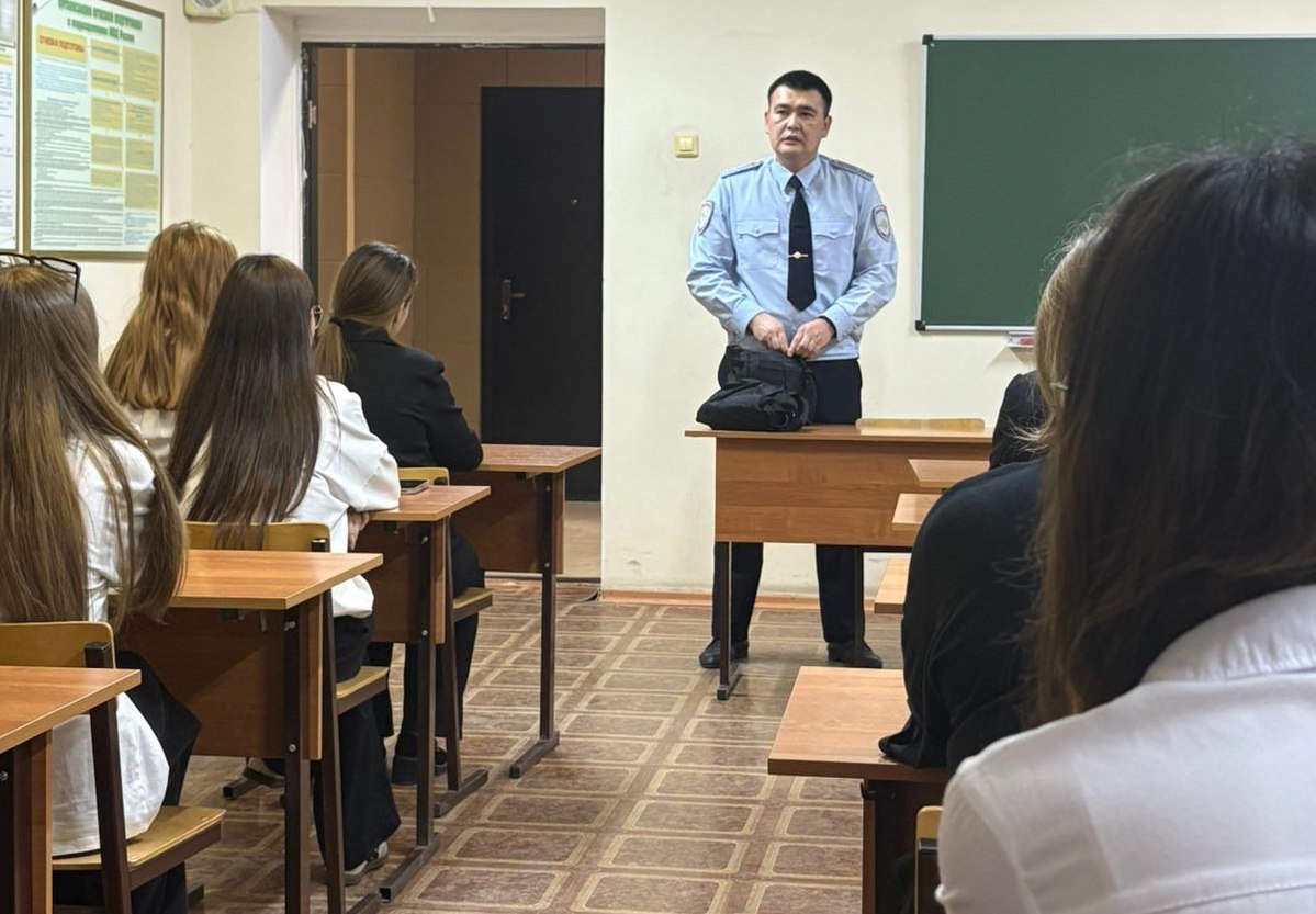 В завершение мероприятия старший специалист ГМПО ОРЛС Астраханского ЛО МВД России на транспорте старший лейтенант полиции Индира Куаншева провела со студентами профориентационную беседу об обучении в высших учебных заведениях МВД России по подготовке профессиональных сотрудников для службы в транспортной полиции, об условиях поступления в высшие учебные заведения МВД России, о вакантных должностях в Астраханском линейном отделе МВД России на транспорте. Полицейские вручили студентам буклеты с приглашением на службу в линейный отдел.