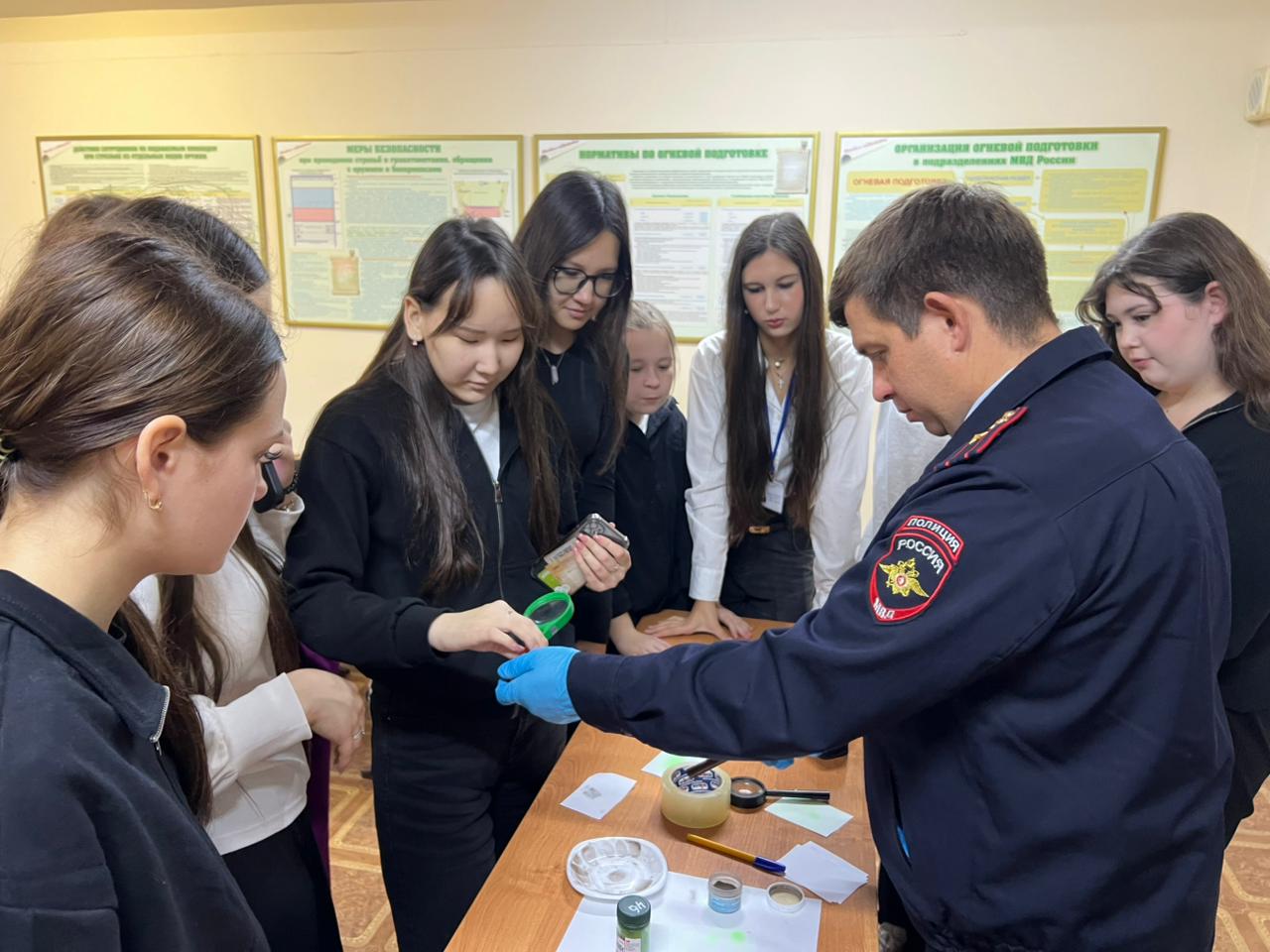 Затем в учебном классе ребята познакомились со спецификой службы экспертно-криминалистического отдела. Начальник ЭКО Астраханского ЛО МВД России на транспорте майор полиции Александр Чернов и эксперт ЭКО капитан полиции Светлана Грященко провели с ребятами практическое занятие по дактилоскопии, заинтересовав студентов данным видом деятельности.