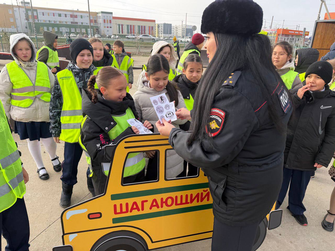 В ходе мероприятия инспектор по пропаганде безопасности дорожного движения капитан полиции Аделя Наушаева с дошколятами закрепила правила поведения на дороге, обсудив опасные участки дороги и сигналы светофора.