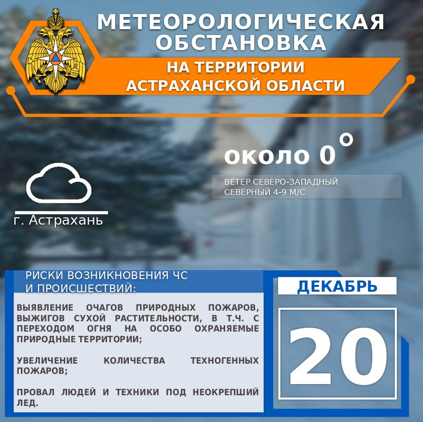По г. Астрахань облачно. Без существенных осадков. Ветер северо-западный, северный 4-9 м/с. Температура воздуха в течении суток около 0°.