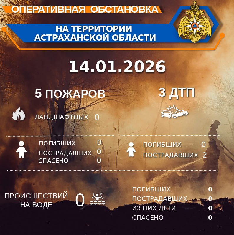 Оперативная обстановка на территории Астраханской области по состоянию на 00:00 14.01.2026