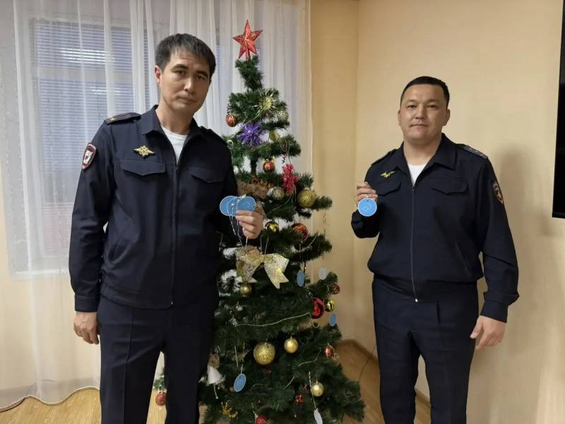 Начальник ОМВД России по Володарскому району подполковник полиции Асхар Тимришев и начальник районной Госавтоинспекции капитан полиции Маххабат Джакашев сняли с «Елки желаний» в администрации муниципального образования символические шарики с пожеланиями детей, имеющих проблемы со здоровьем.