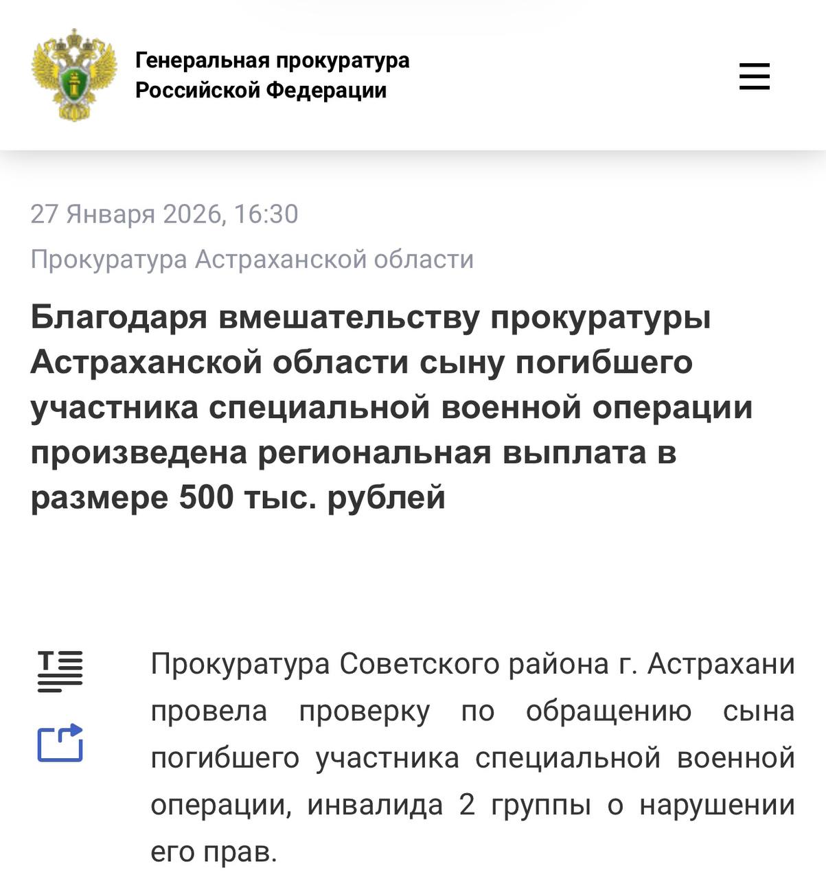 Прокуратура установила фактическое проживание военнослужащего в Ахтубинском районе Астраханской области и направила в суд исковое заявление об обязании выплатить сыну материальную помощь в связи с гибелью отца в специальной военной операции.