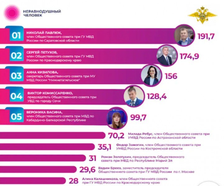 Общественный совет при МВД России подытожил год и представил рейтинг активности на платформе «Неравнодушный человек» за 2025 год. Это не просто цифры — это признание настоящих лидеров, которые меняют отношение общества к полиции к лучшему.