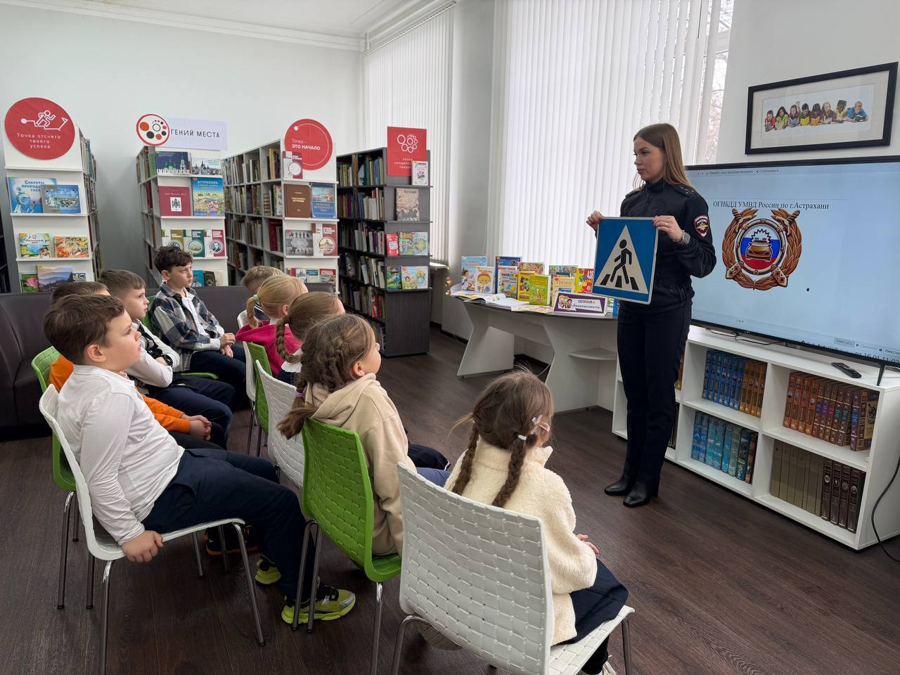 Дорожные полицейские города в Центральной городской библиотеке для школьников организовали познавательную встречу. Ребята не только узнали о типичных «дорожных ловушках», но и на практике изучили работу регулировщика. В живом диалоге с инспекторами дети закрепили правила безопасного поведения на улице.
