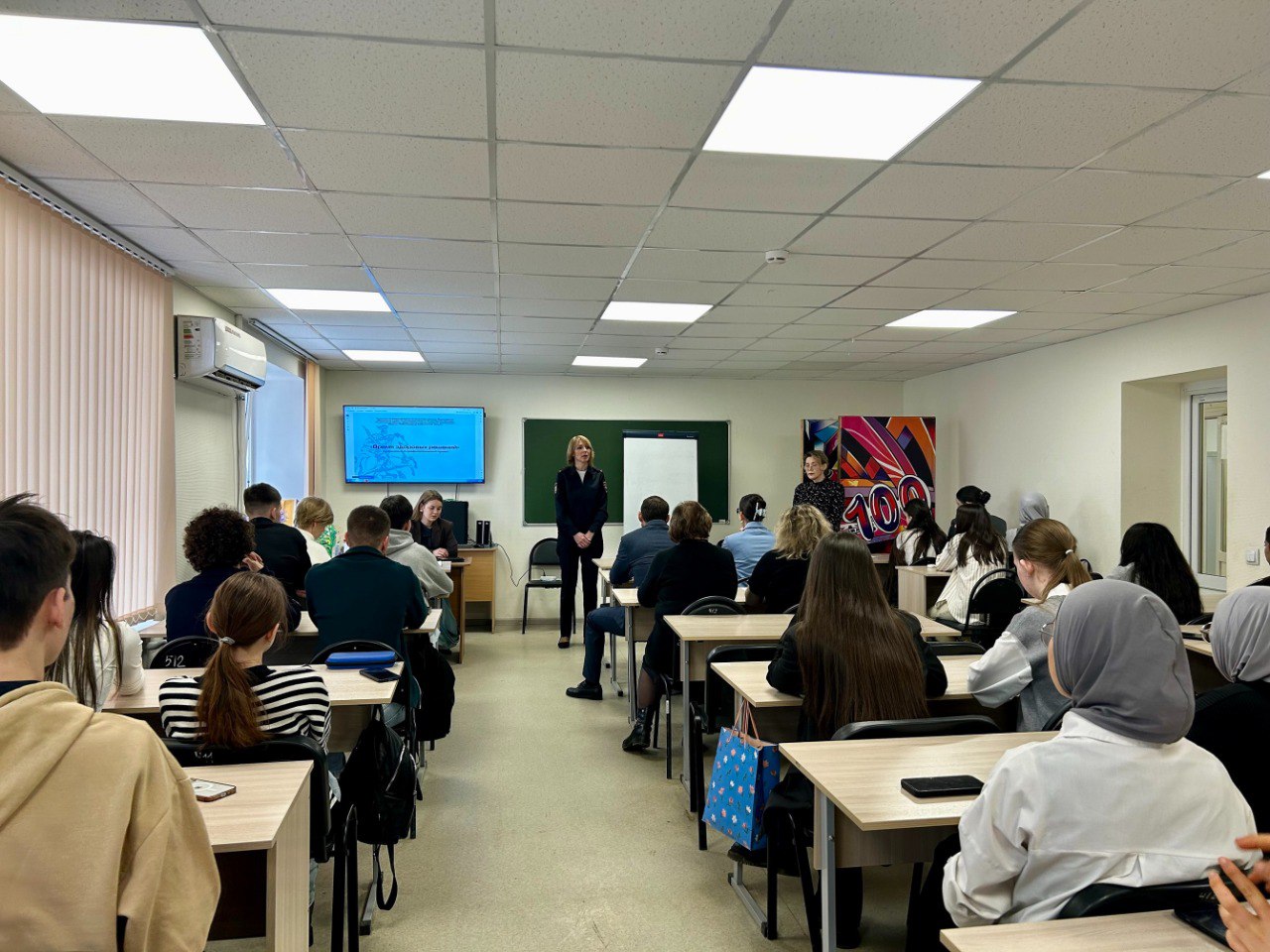С участием студенческой аудиторией были проведены: заседание дискуссионного клуба «Студент говорит» по вопросам негативного влияния запрещенных веществ на организм, последствий совершений правонарушений и преступлений, безопасного поведения в сети Интернет.