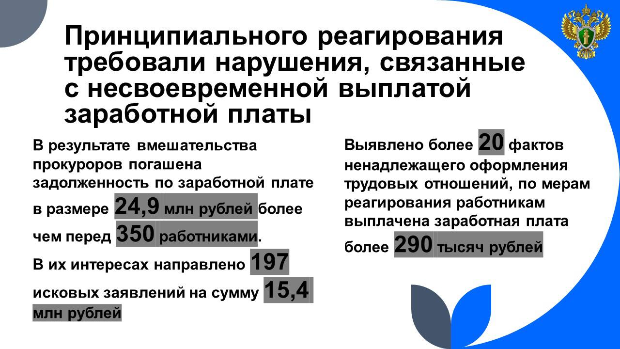 По поручению Александра Гулягина прокуроры активно используют судебные полномочия для обеспечения законности в сфере соблюдения трудовых прав граждан