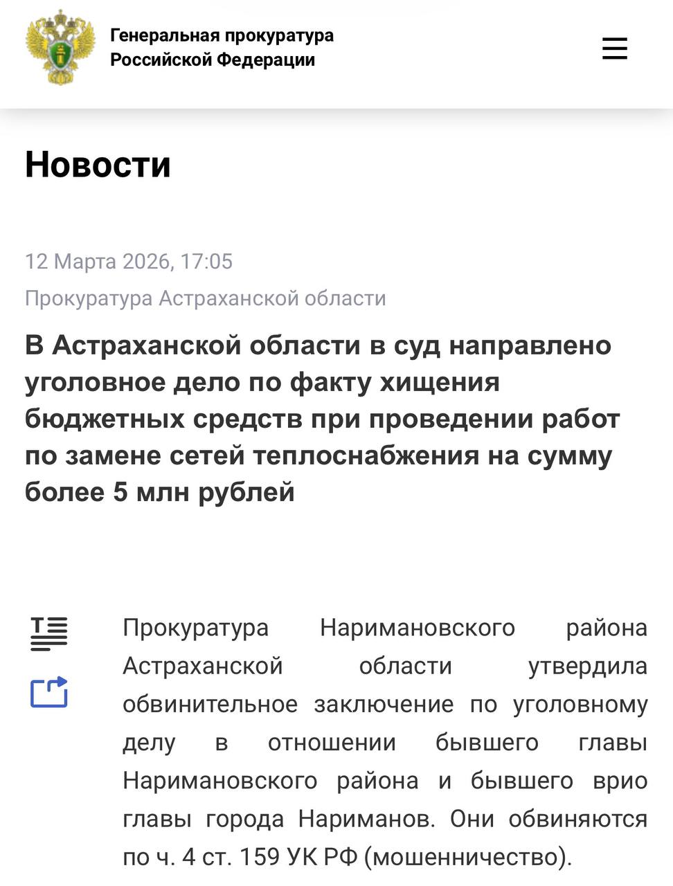 Уголовное дело направлено в Наримановский районный суд Астраханской области. В целях возмещения причиненного ущерба на имущество обвиняемых наложен арест, а также предъявлено исковое заявление.