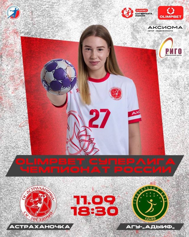 Первый домашний матч OLIMPBET Суперлига – 2025/2026 Астраханочка/АГУ — «Адыиф» состоится 11 сентября в спорткомплексе «Звёздный». Сбор в 18:00, начало в 18:30.Спортсменки сыграют с майкопским клубом АГУ-«Адыиф». Зрителей...