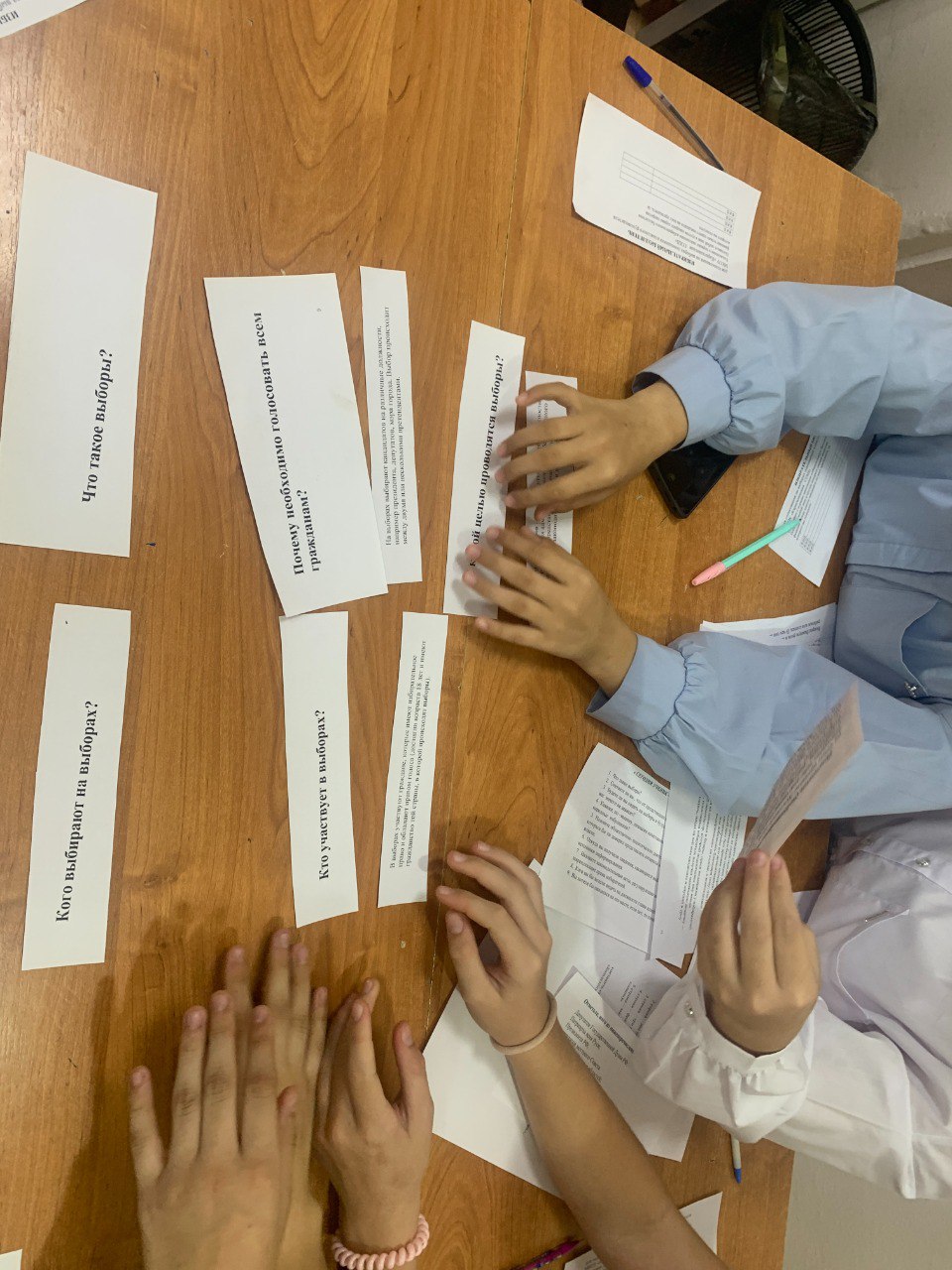 В Карагалинской сельской библиотеке шестиклассники Карагалинской школы погрузились в мир избирательного права и порядка голосования, приняв участие в познавательной игре «Я в теме».
