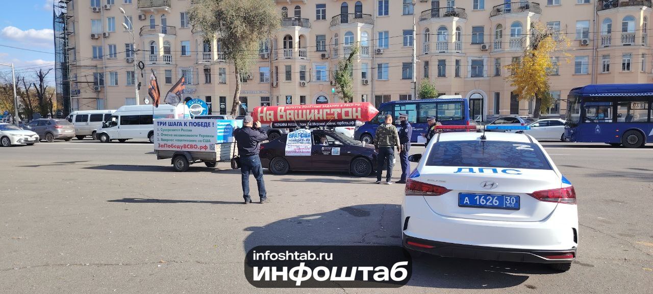 По улицам Астрахани проехал автомобиль с макетом ракеты и надписью «На Вашингтон»