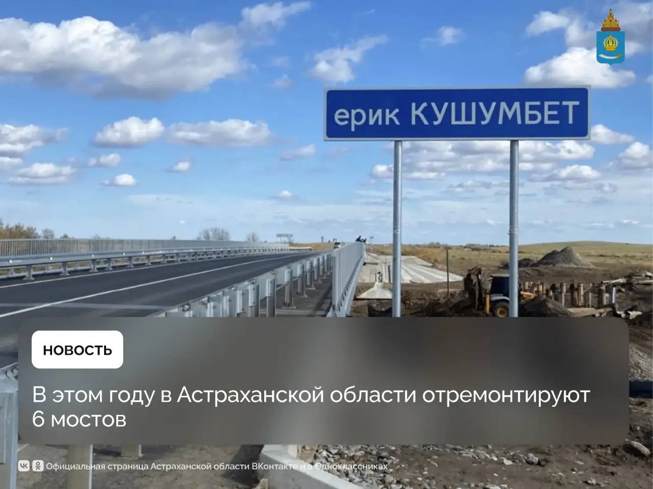 Два моста сдадут в эксплуатацию до конца года. Среди них и мост через ерик Кушумбет на трассе Астрахань-Марфино. Ремонт проводят про нацпроекту «Инфраструктура для жизни».
