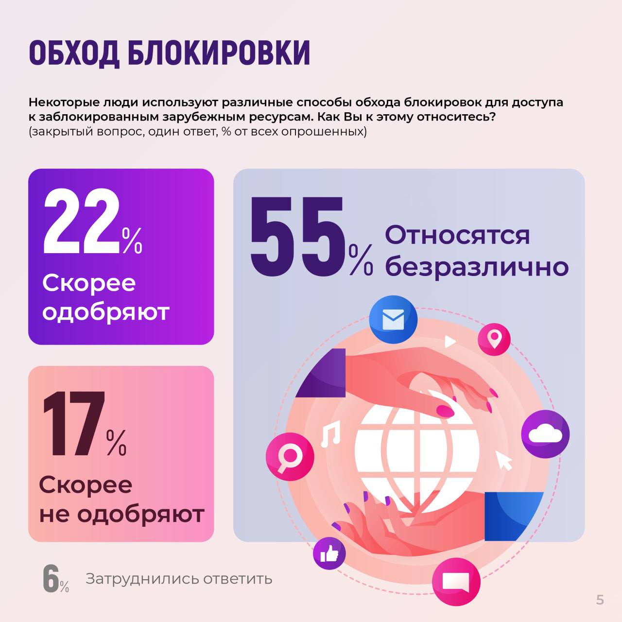По данным АЦ ВЦИОМ, отношение к ограничениям в интернете неоднозначное: