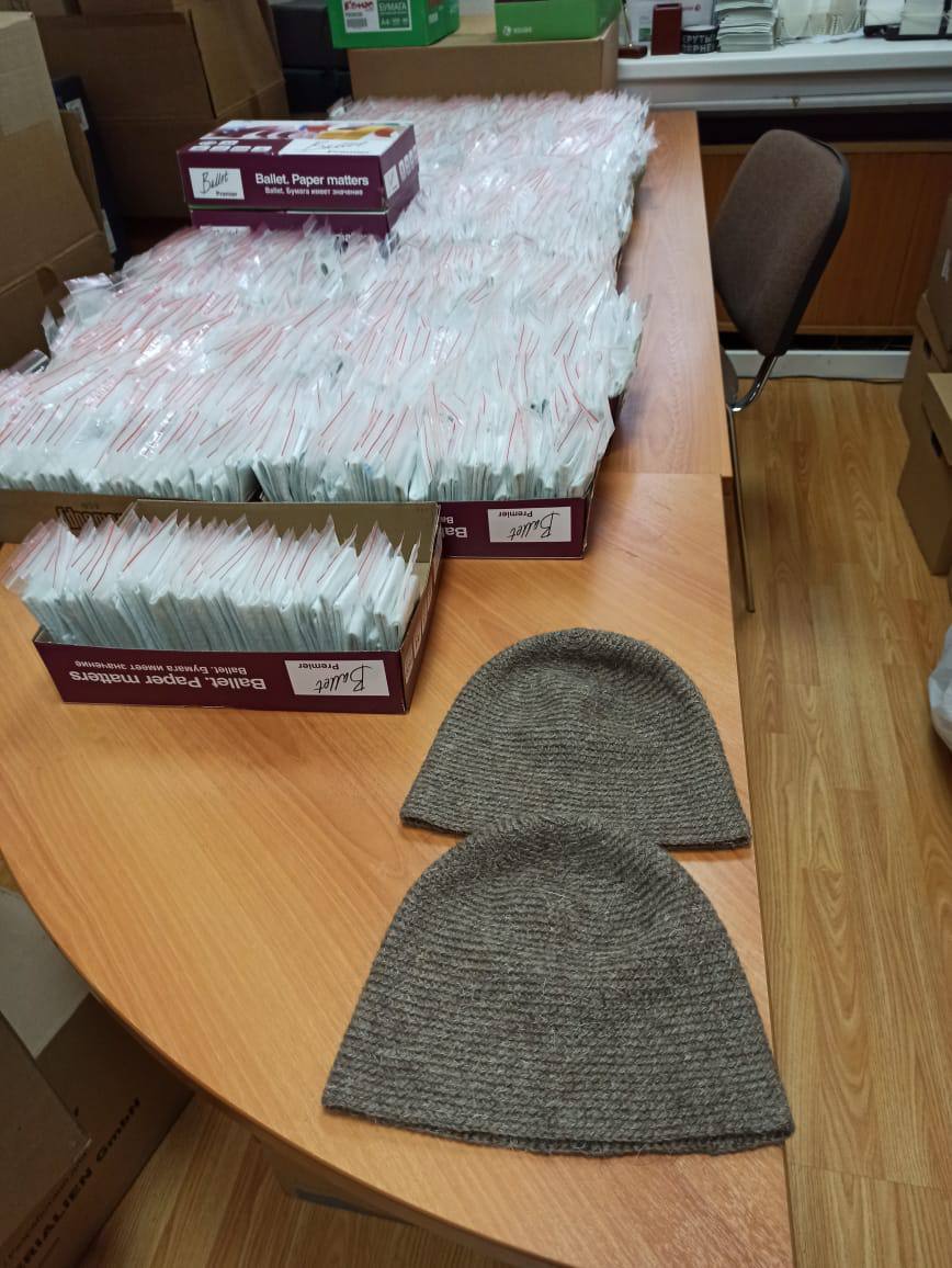 Сотрудники передали шерстяные подшлемники под каски бойцам на передовую.