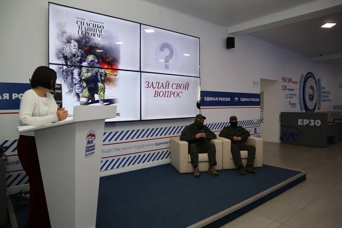 В рамках открытого диалога «От первого лица: разговор с участником СВО» 50 студентов вузов и ссузов узнали от сотрудников СОБР управления Росгвардии по Астраханской области о боевых задачах, выполняемых на территории региона и в зоне проведения специальной военной операции.