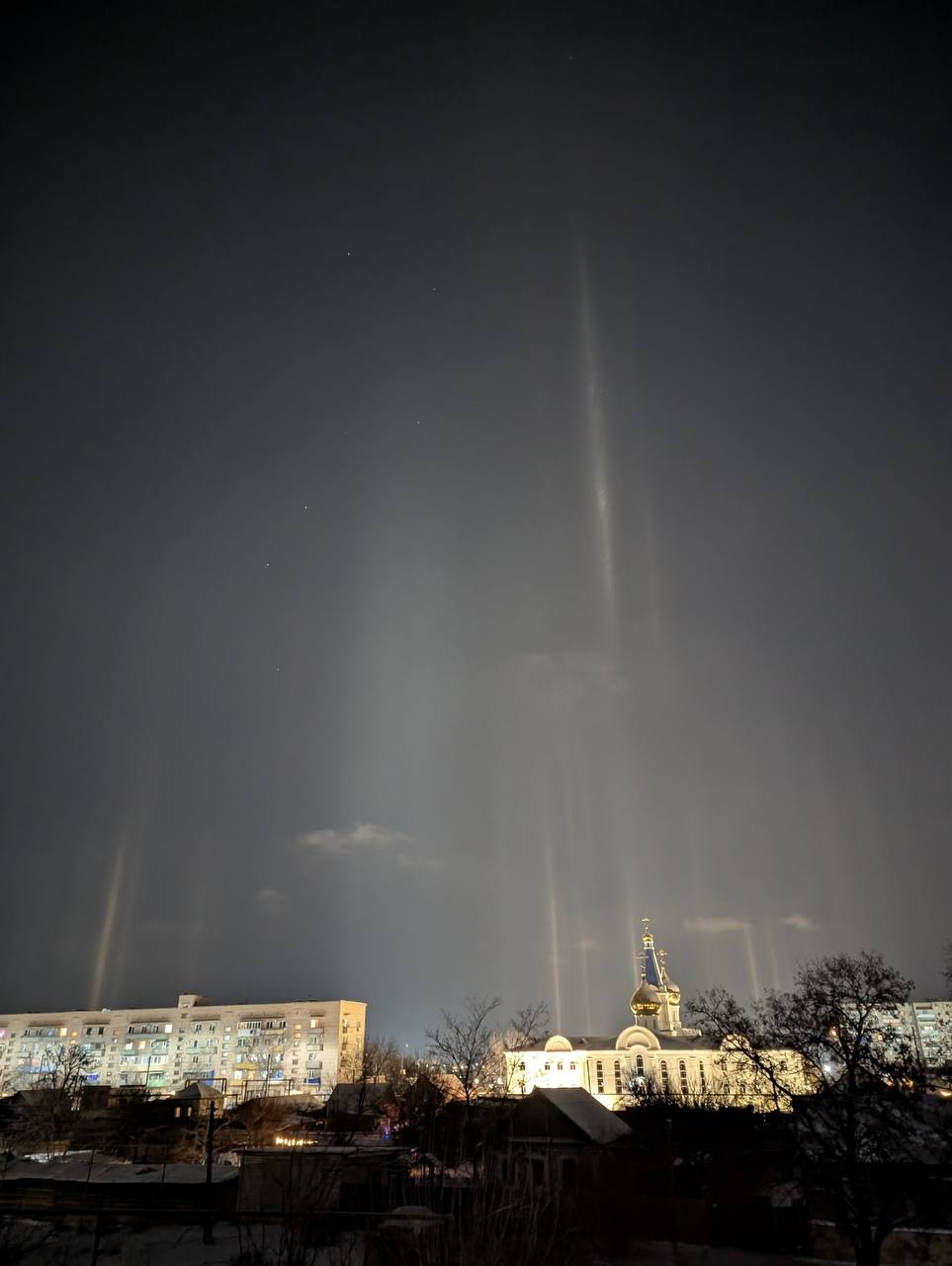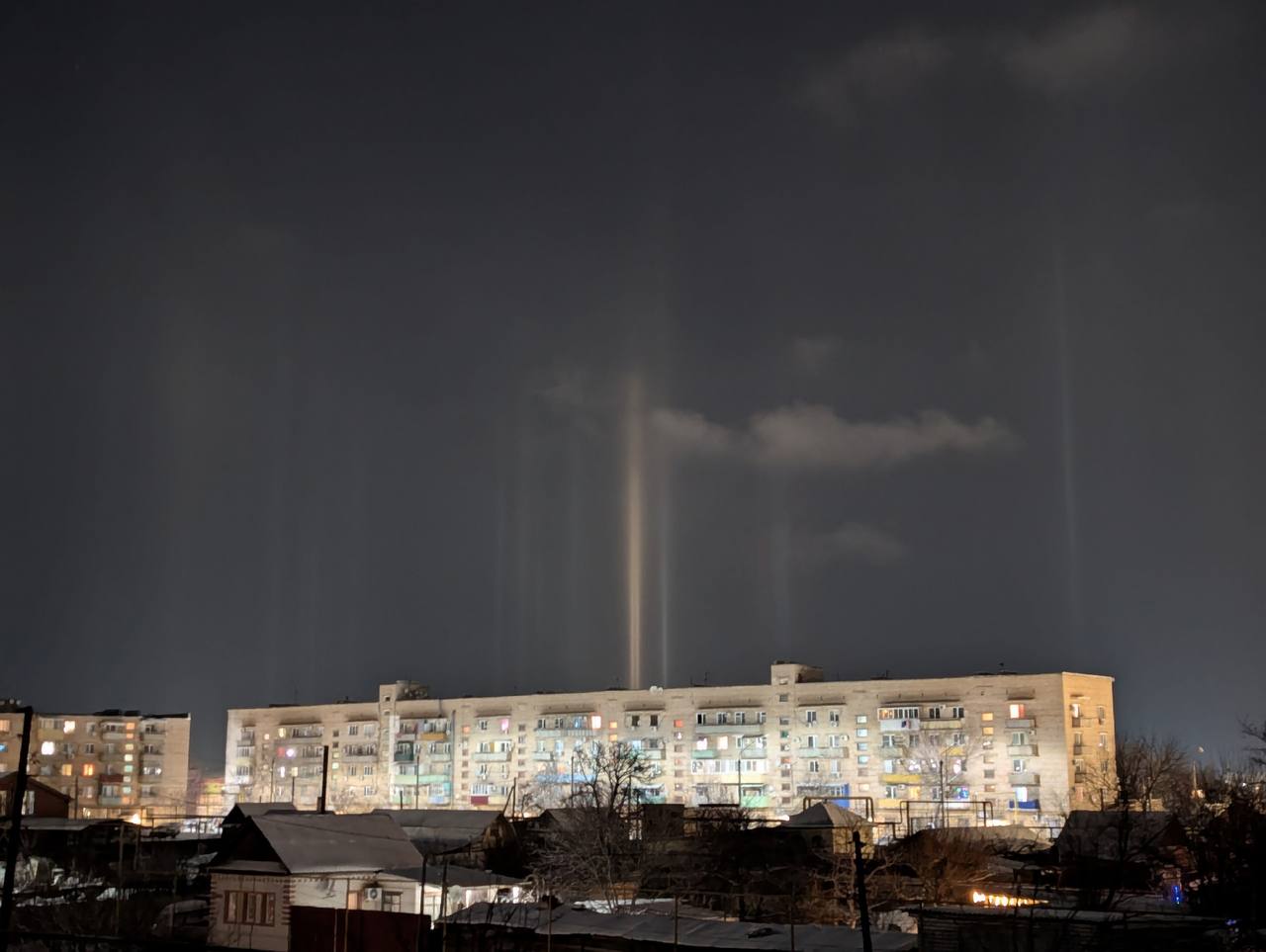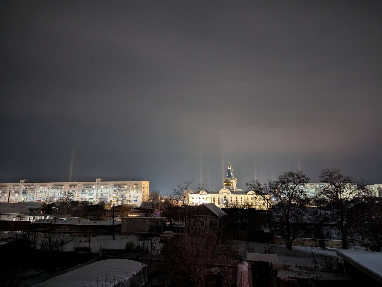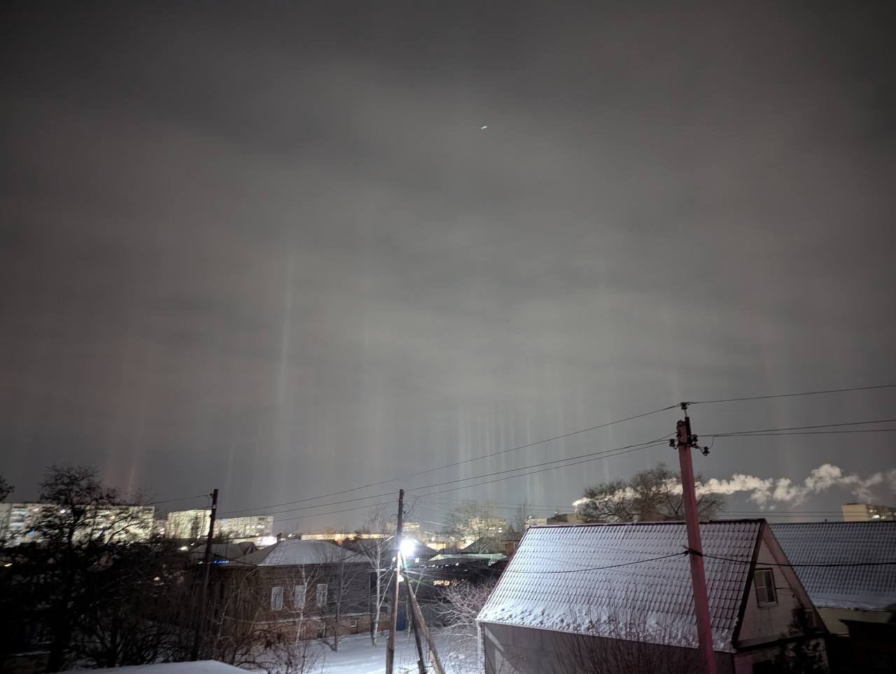 В морозный вечер 15 января в Ахтубинске астроном-любитель Тимофей Курьянов запечатлел редкое атмосферное явление — световые столбы. Как сообщили в