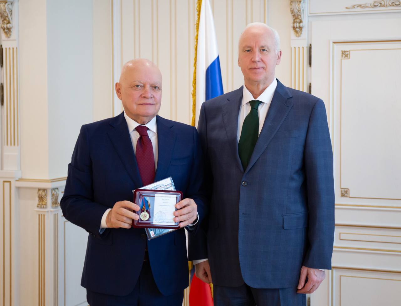 Отдельно Александр Иванович остановился на героической работе следователей и журналистов в зоне проведения СВО. «Мы с 2014 года расследуем преступления киевского режима. Наши сотрудники работают в непосредственной близости от линии фронта, в условиях, максимально приближенных к боевым. Они собирают доказательства преступлений неонацистов, фиксируют зверства против мирного населения, обеспечивают справедливость и историческую правду. Их мужество и преданность долгу заслуживают самого высокого уважения. В зоне проведения СВО следователи и журналисты вместе трудятся за торжество закона».
