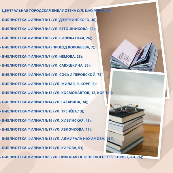 С 9 по 13 февраля можно будет принести книги в дар в центральную городскую библиотеку либо в любой из филиалов библиотечной системы (адреса в карточке) с 9:00 до 19:00 .