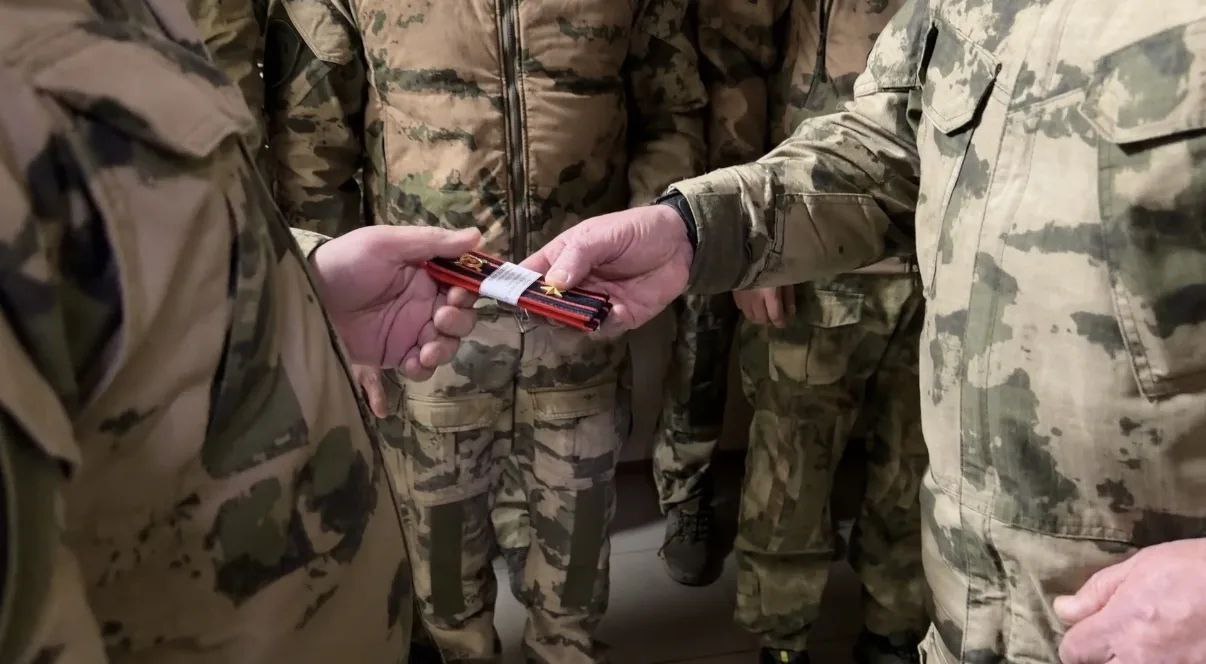 Кроме того, в ходе построения отличившимся сотрудникам командир спецподразделения вручил ведомственные медали «За боевое отличие». Офицер поблагодарил личный состав за добросовестное и качественное выполнение служебно-боевых задач в пункте постоянной дислокации и в зоне СВО.