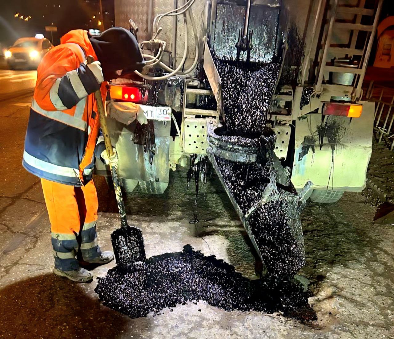Дорожники провели ямочный ремонт литым асфальтом на участках 40 городских дорог, общая площадь обновленного покрытия превысила 600 квадратных метров.