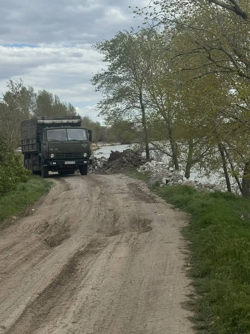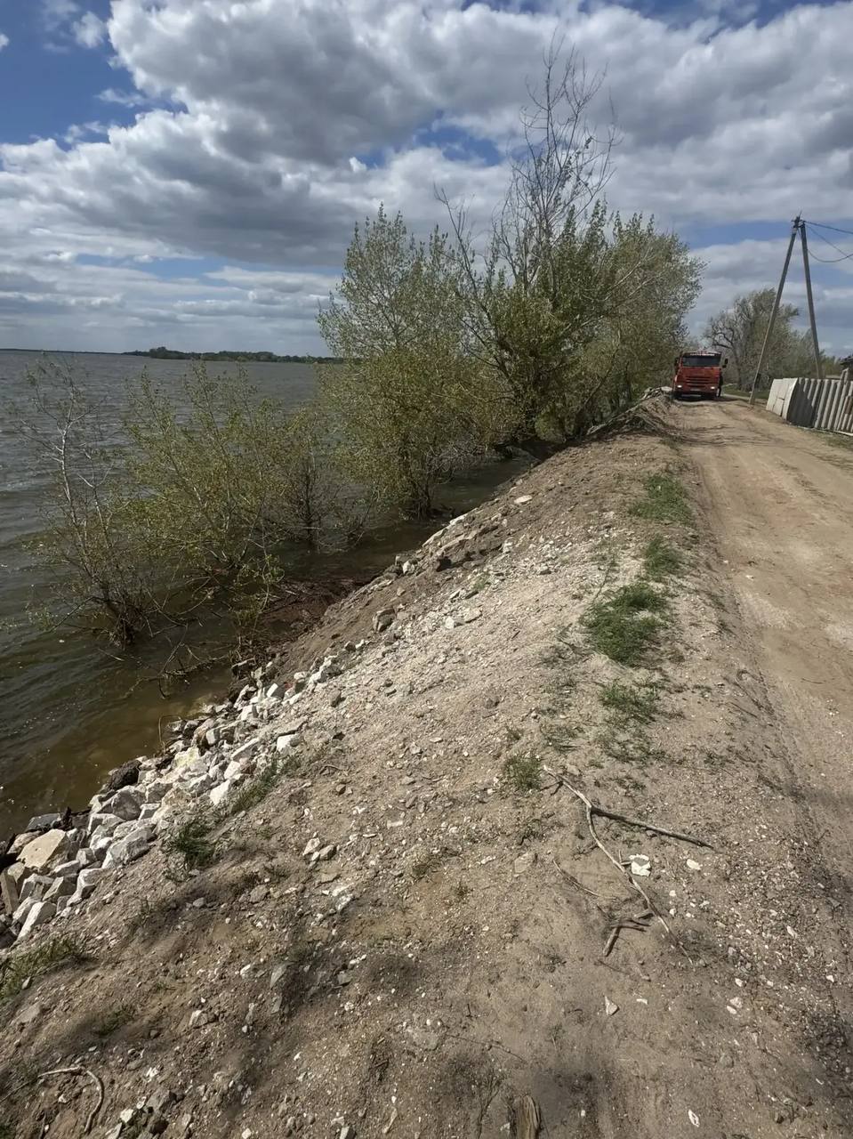 В ходе проведения противопаводковых мероприятий сегодня были продолжены работы по укреплению и восстановлению водооградительного вала на улице Лесхозная.