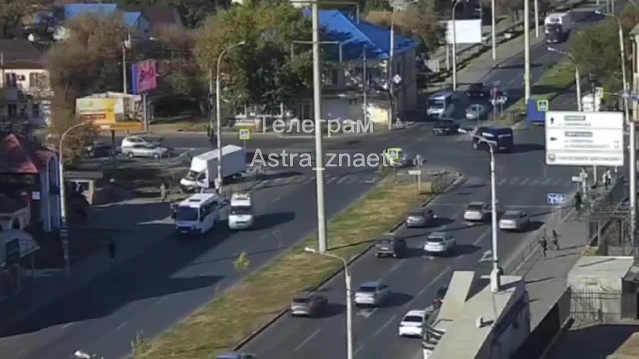 Чудом обошлось! "Газель" вылетела на тротуар с людьми после ДТП в Астрахани