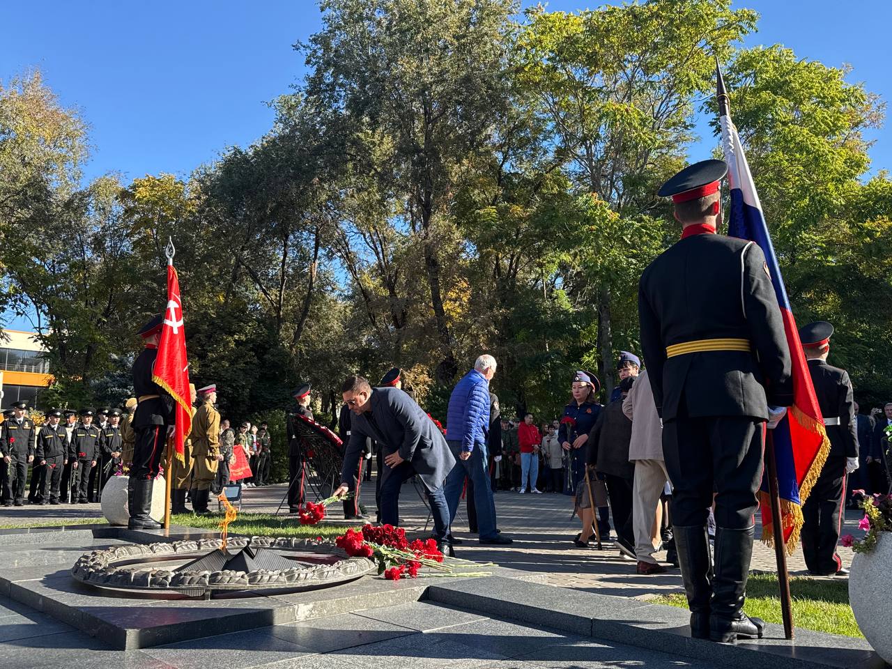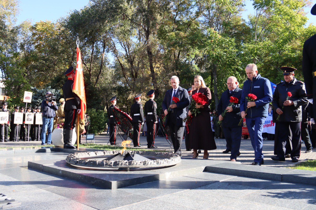 По поручению Председателя Думы Астраханской области Игоря Мартынова в патриотическом мероприятии приняли участие вице-спикер регионального парламента Олег Петелин и первый заместитель председателя комитета областной Думы по социальной политике Денис Харитонов.