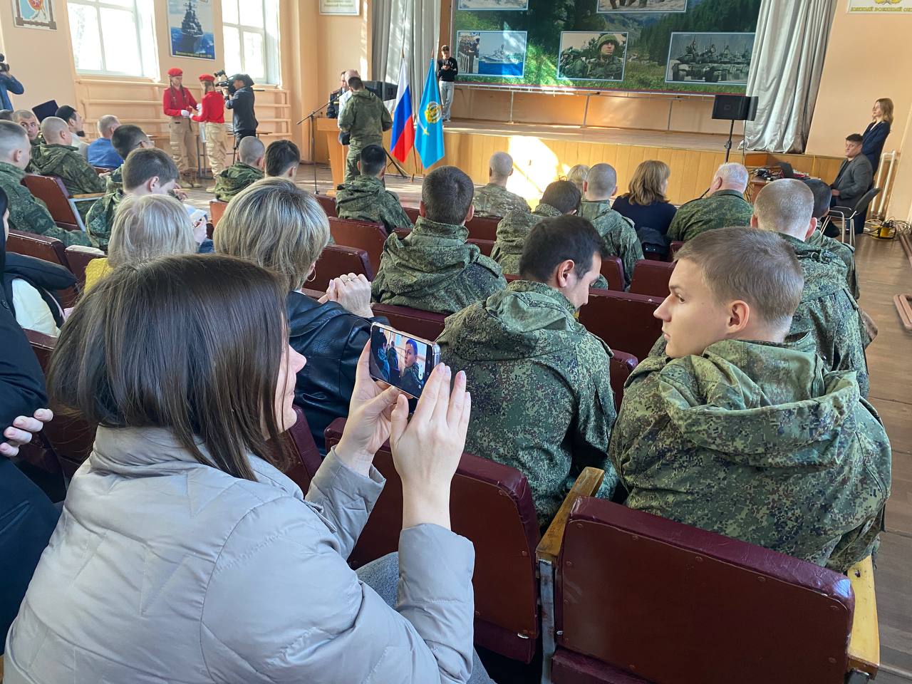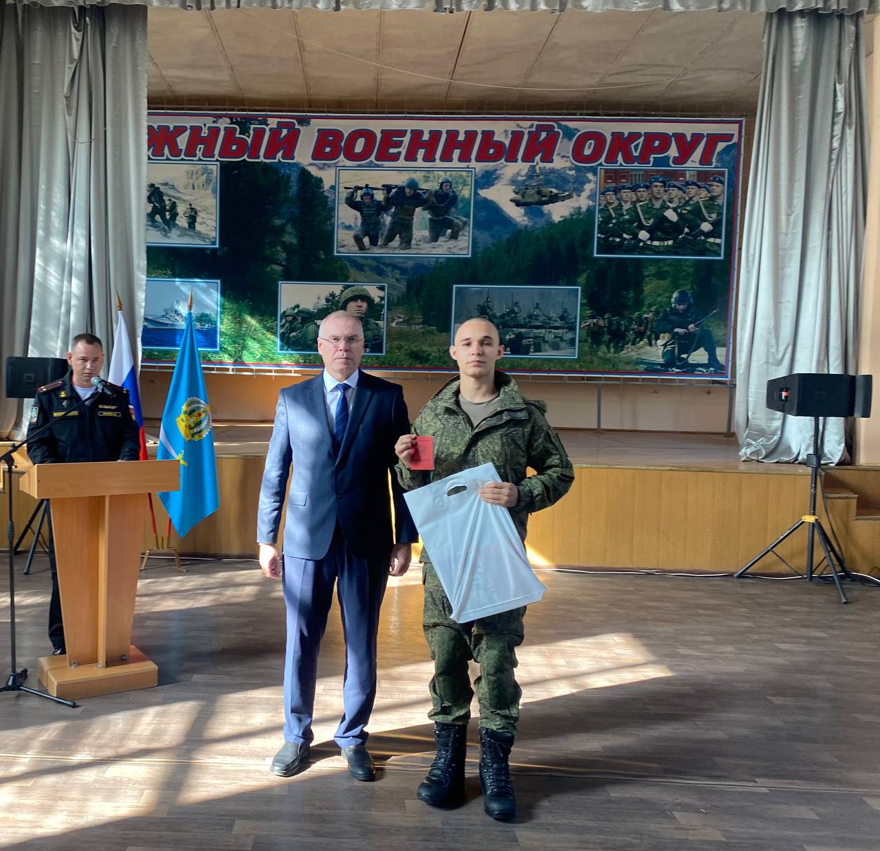 Военные билеты молодым бойцам вручил министр региональной безопасности Александр Тимофеев.