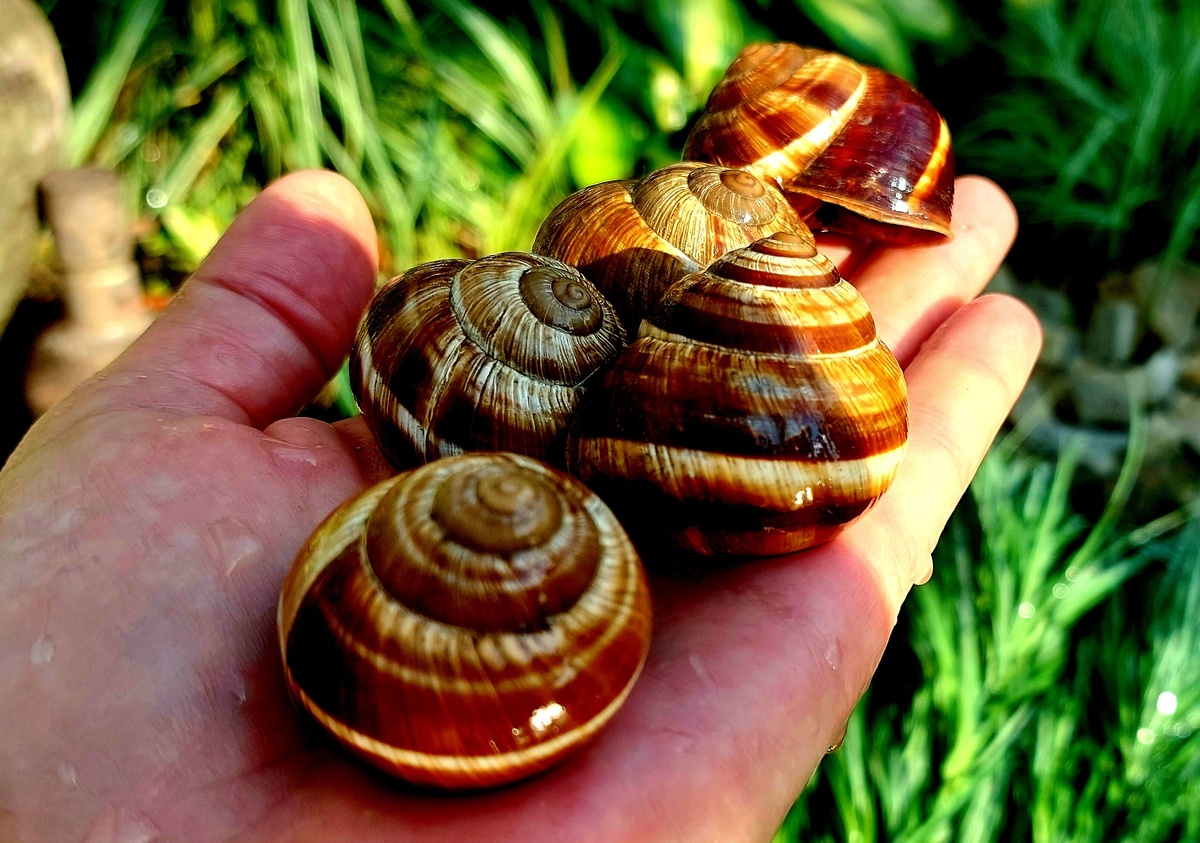 Местные улитки весьма красивы и крупных размеров и могут быть замечены на тротуарах, заборах и даже на проезжей части, особенно после дождя. Поначалу их существование не вызывало проблем, и их собирали, чтобы подкормить уток соседей. Однако на новом участке они начали представлять проблему. Моллюски заняли все грядки, съедая не только клубнику, но и кабачки, огурцы и тыквы.