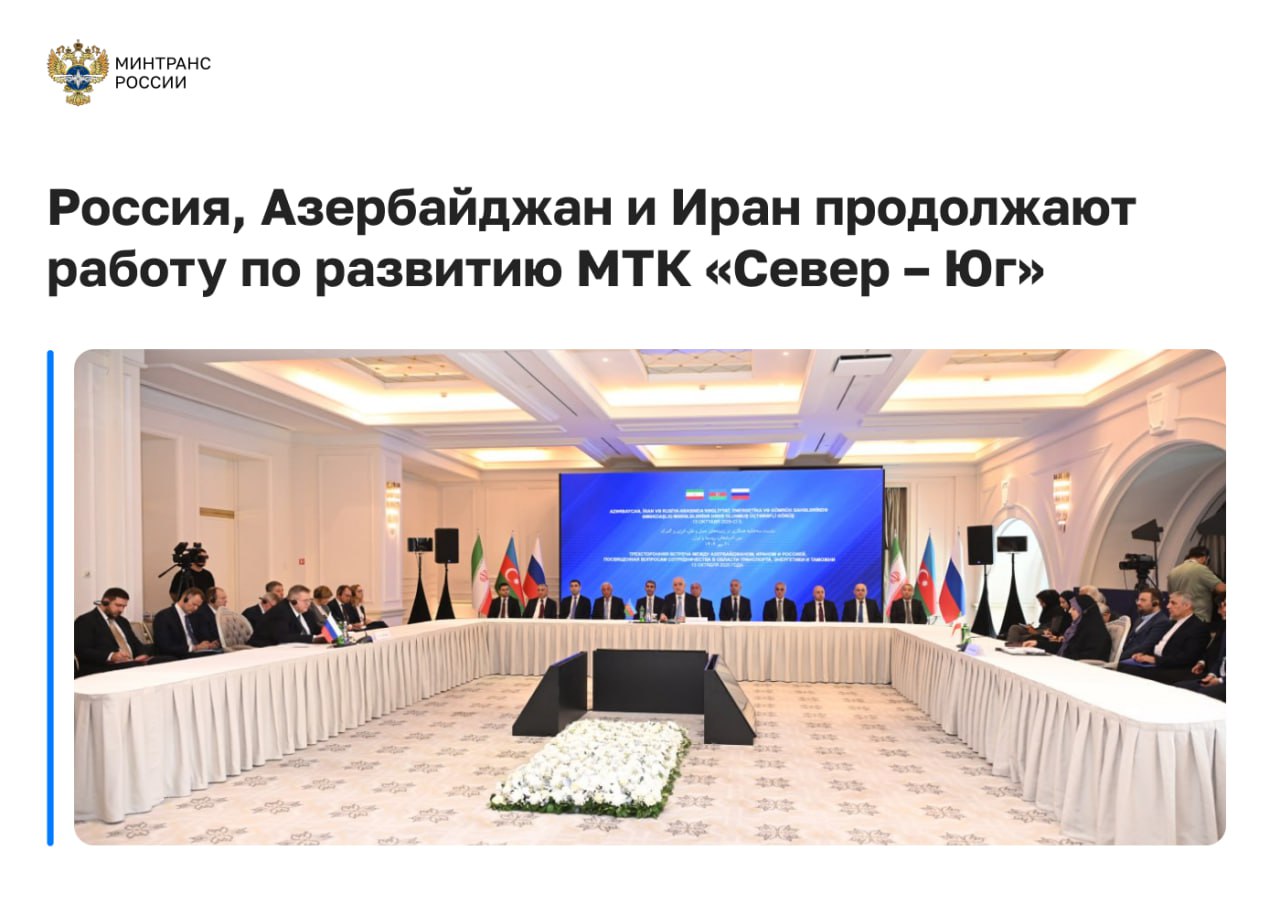 Россия, Азербайджан и Иран продолжают работу по развитию МТК «Север – Юг»