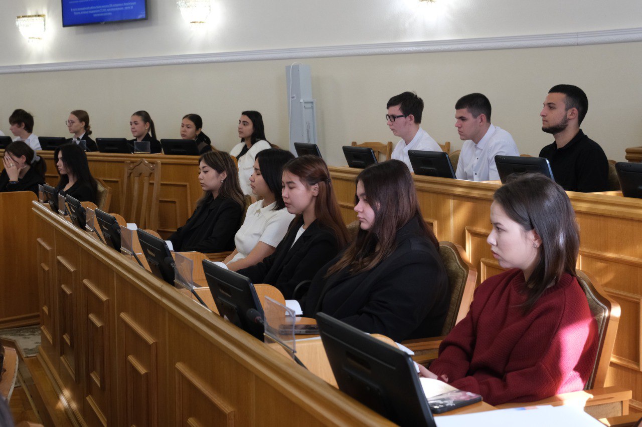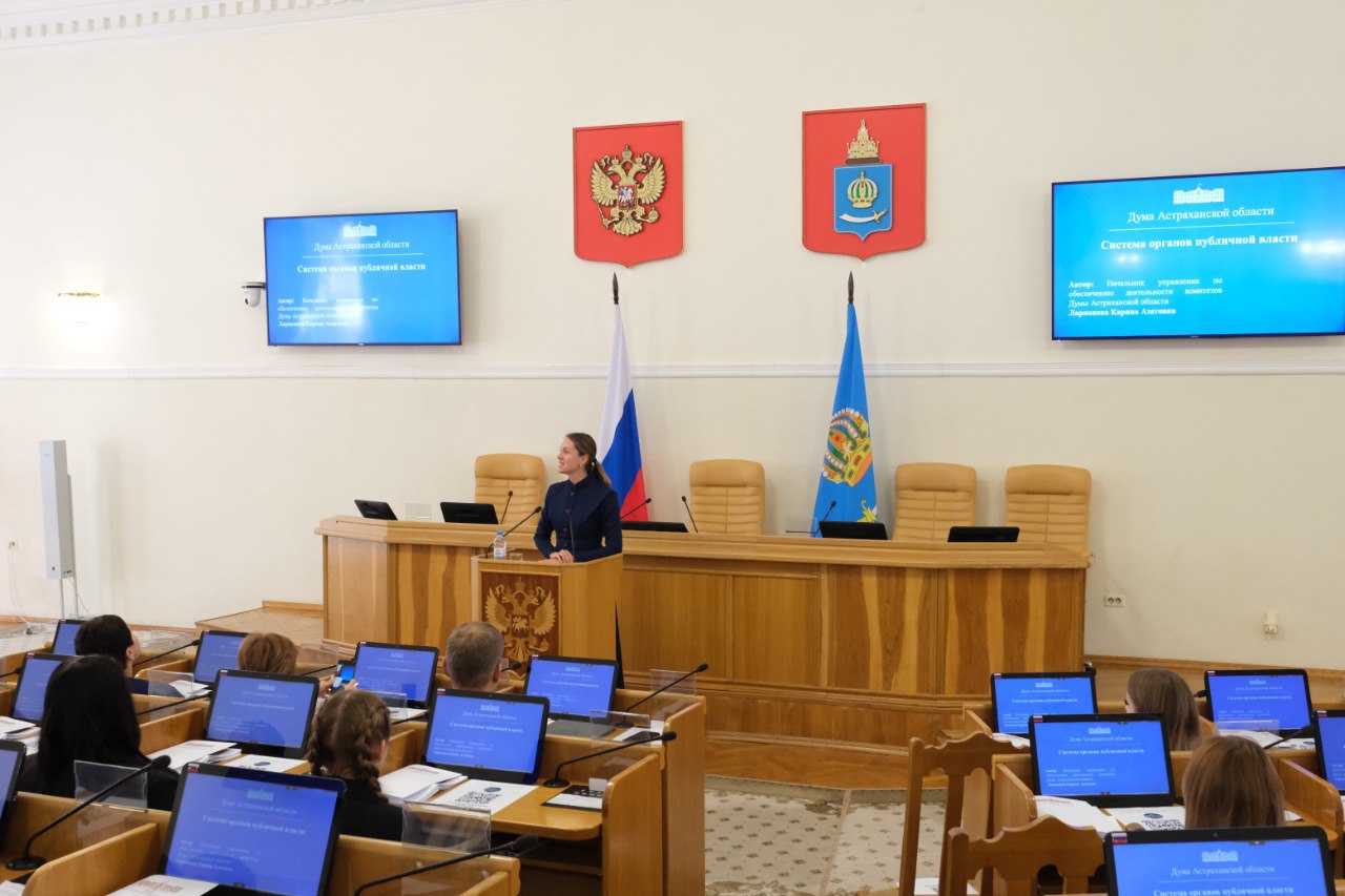 В Думе Астраханской области состоялось практическое занятие для студентов отделений среднего профессионального и высшего образования Астраханского филиала Международного юридического института на тему «Система органов публичной власти», направленное на углубленное понимание конституционных основ и практики законотворчества.