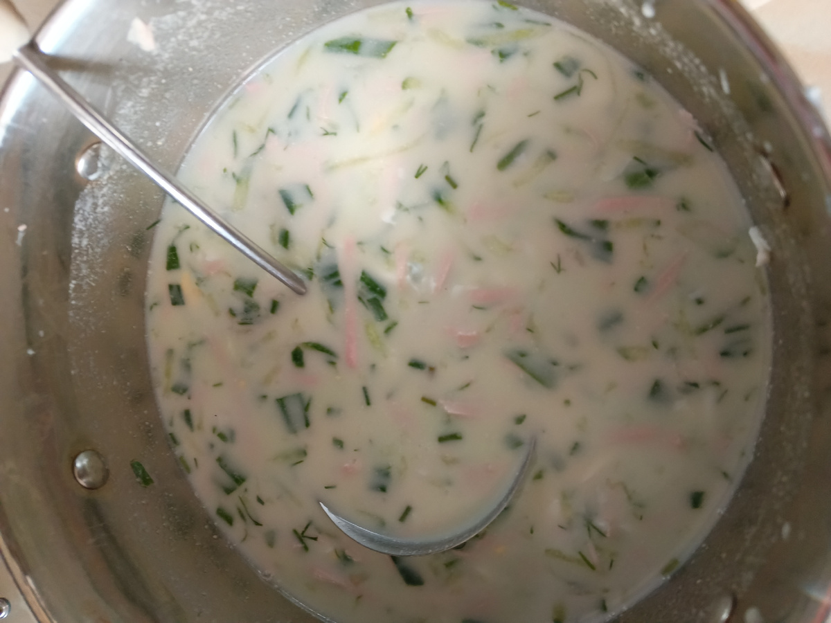- Сыворотка: Она дарит окрошке мягкость и легкость. Сыворотка менее газированная, чем квас, и прекрасно сочетается со свежими овощами, не перебивая их вкус.