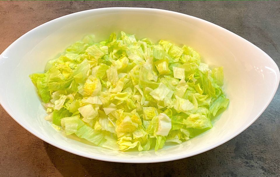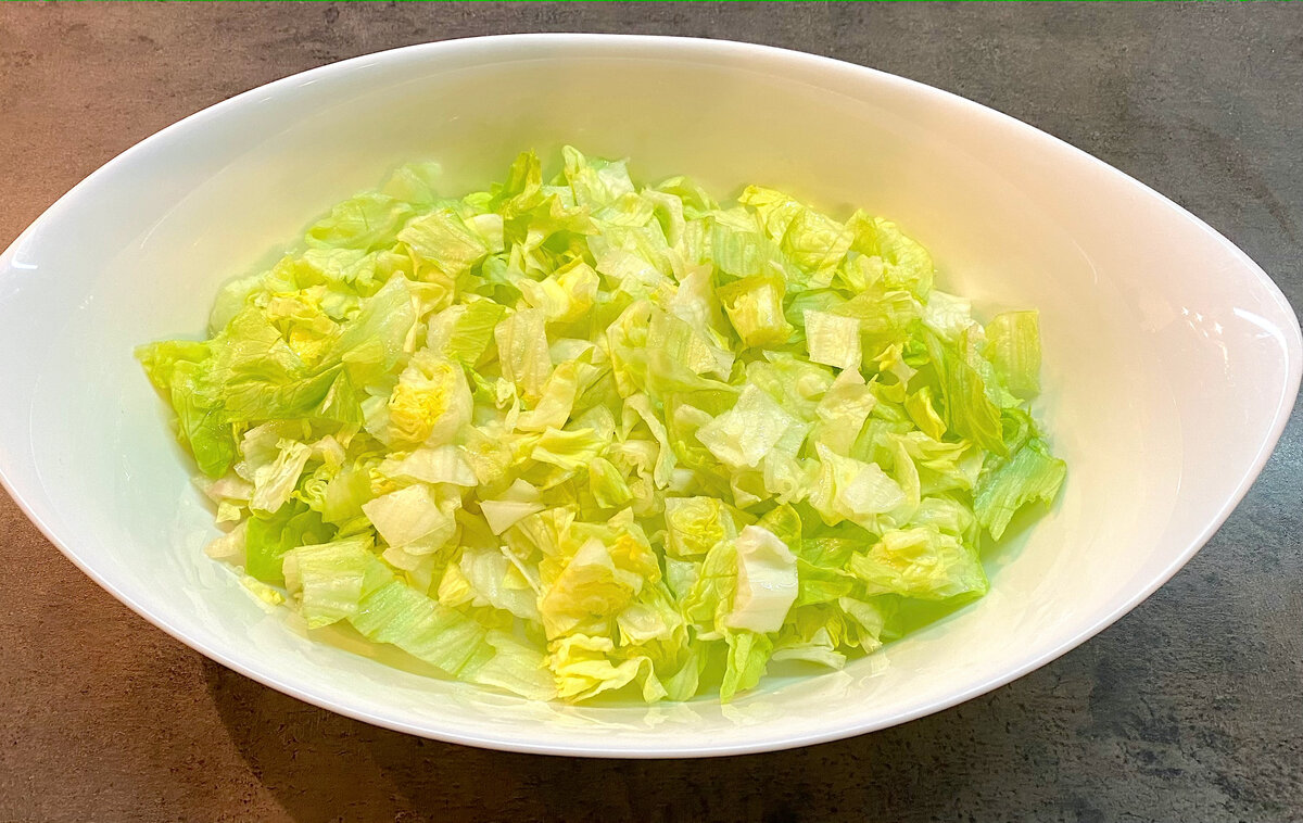 Салат Айсберг нарезать кусочками - это придаёт ему более изящный вид по сравнению с разрыванием руками. Затем в салатницу выложить подготовленные овощи, заполнив их нарезанными помидорами и охлажденными креветками. Для дополнительных морских нот можно добавить копченые мидии, которые придадут блюду глубину вкуса.