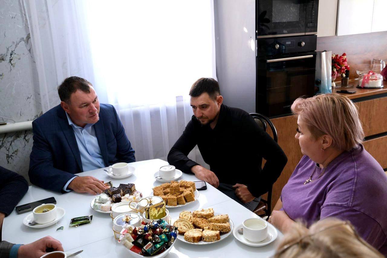 Вопросы увековечивания памяти героев специальной военной операции обсудили финалист региональной кадровой программы «Победоносец», ветеран СВО Евгений Суслин и глава Камызякского района Михаил Черкасов в ходе посещения многодетной семьи двух братьев – военнослужащих из села Чаган.