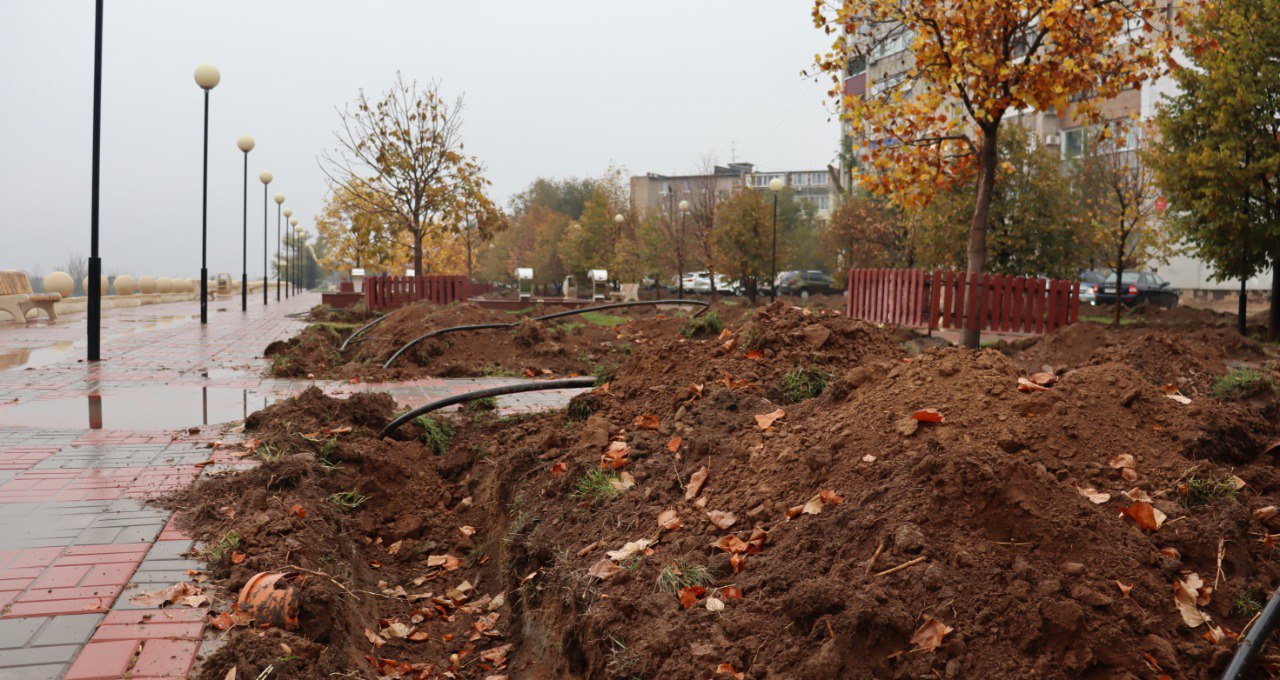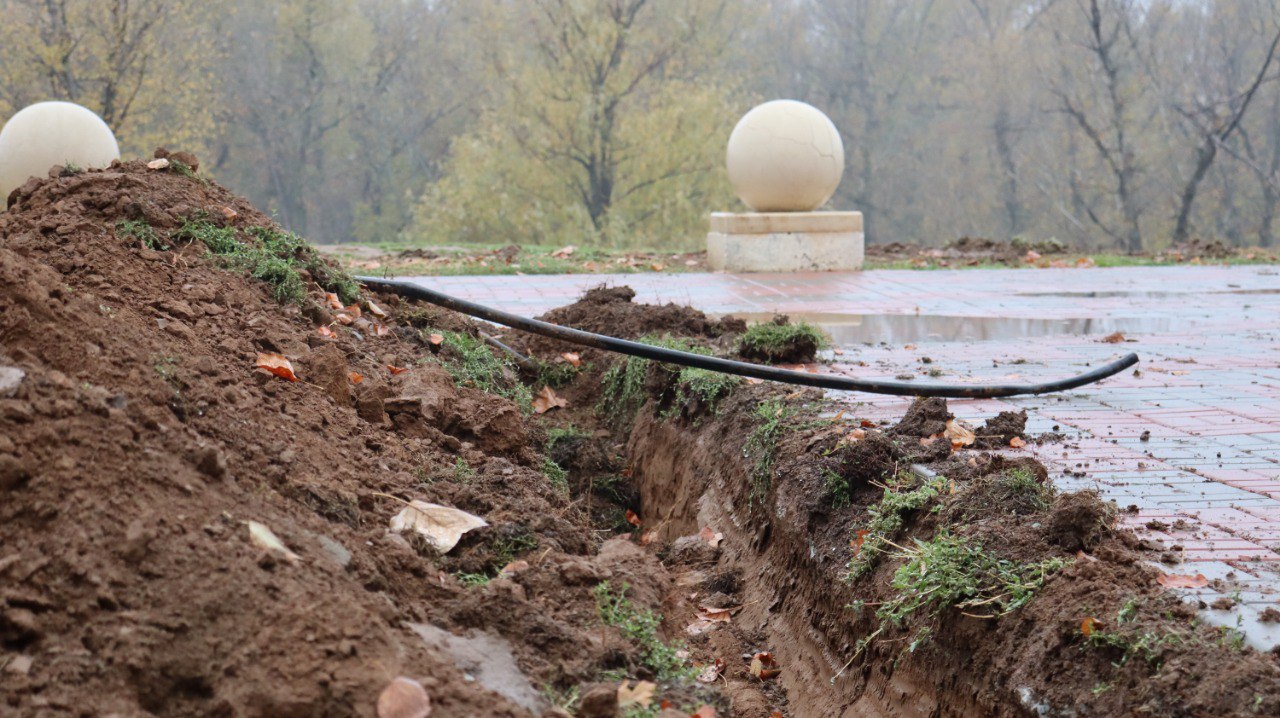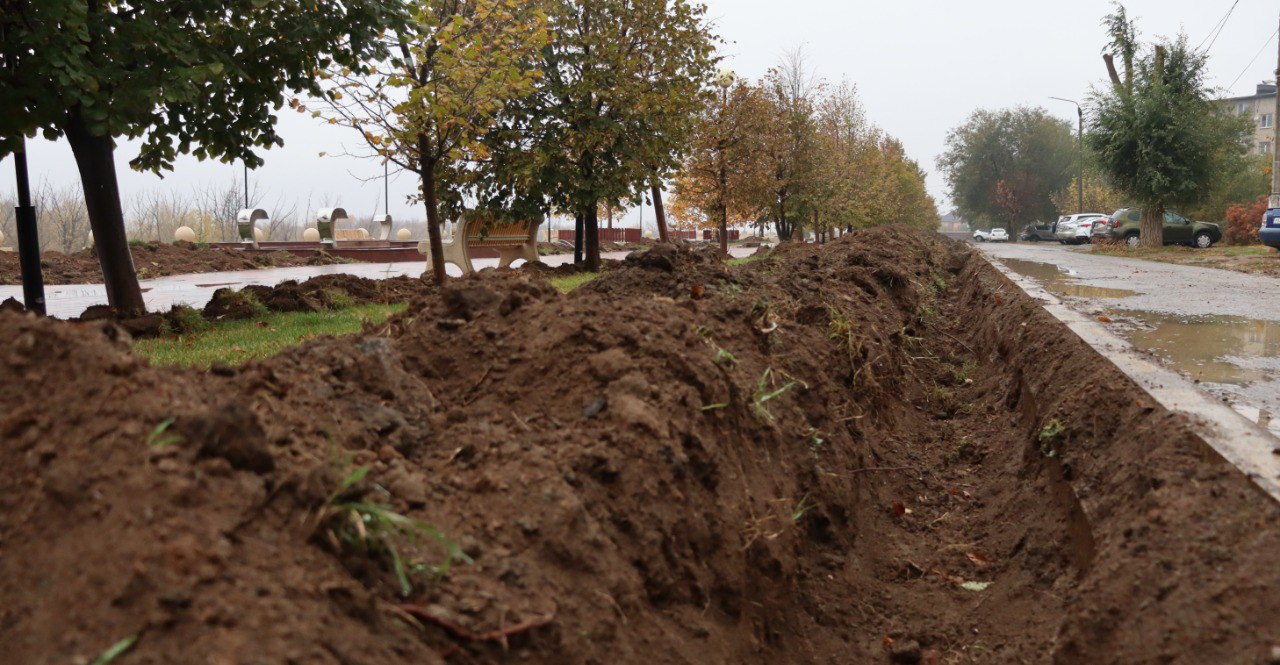 Так, подрядчик приступил к работам по устройству системы автоматического полива. По проекту будет установлена новая водопроводная трасса и форсунки с разбрызгивателем. Это необходимо для качественного обслуживания данной зелёной зоны.