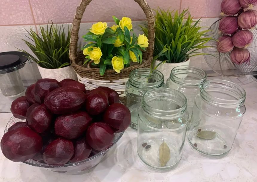 Когда свекла отварена и остужена, начинается самый интересный этап. В стерилизованные банки помещают ароматные специи - лавровый лист, душистый и черный перец. После этого свеклу укладывают в банки, стараясь уместить как можно больше. Далее готовится маринад: на один литр воды потребуется две столовые ложки соли и одна - сахара с горкой, а также две ложки уксуса.