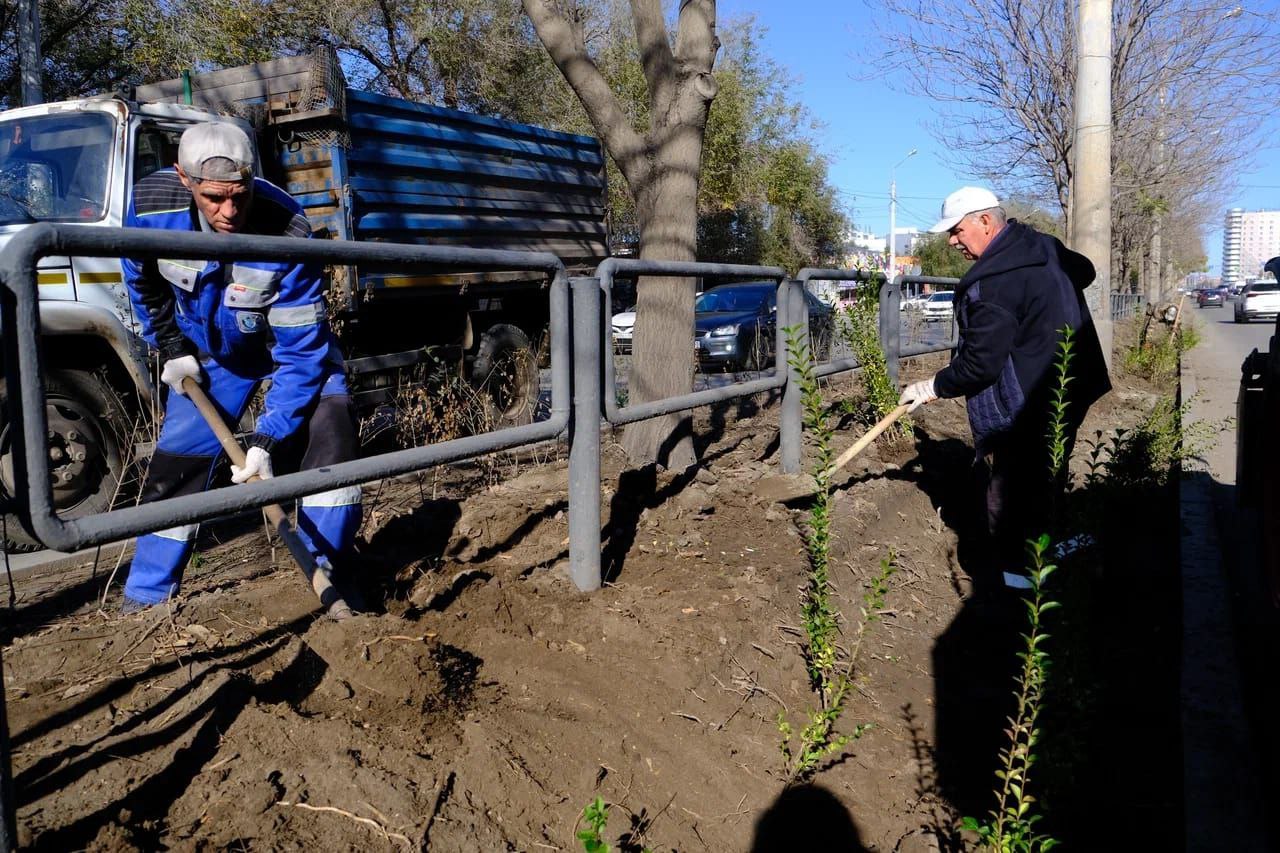 Администрация Астрахани продолжает благоустройство улицы Победы. На разделительной полосе специалисты муниципального предприятия «Зеленый город» уже высадили около двух тысяч кустов бирючины, а сегодня еще порядка пятисот саженцев.