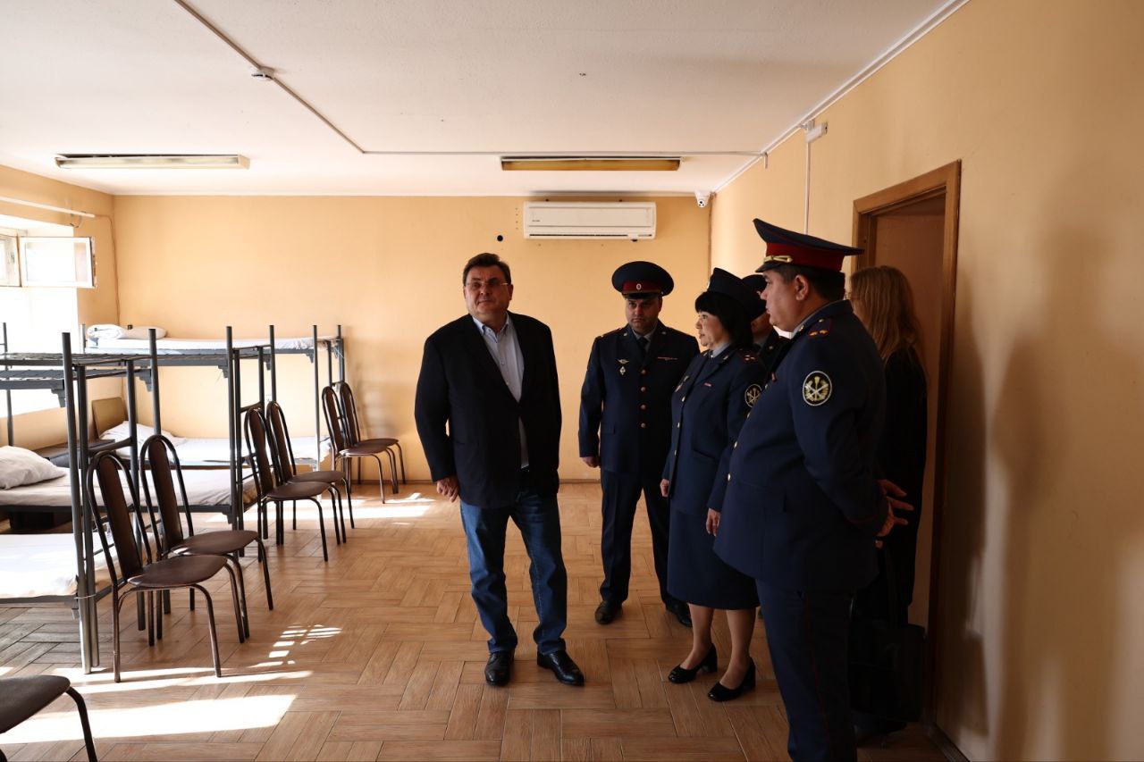 Особое внимание министр уделил посещению следственного изолятора №1. В ходе визита Константин Чуйченко осмотрел режимные корпуса учреждения, камеры для содержания подозреваемых, обвиняемых и предварительно осужденных, а также ознакомился с работой пищеблока.