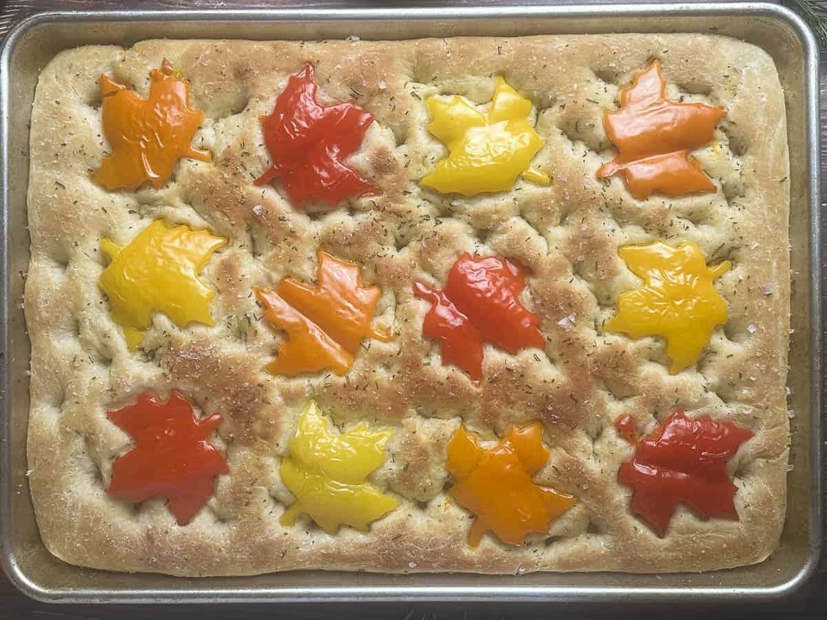 Осенний сезон вдохновляет кулинаров на создание блюд, которые не только радуют глаз, но и приносят удовольствие от вкуса. Простой, но эффектный способ украсить традиционную фокаччу — это использование разноцветных болгарских перцев, вырезанных в форме кленовых листьев. Такой подход привносит в выпечку яркость и тепло осенних оттенков.