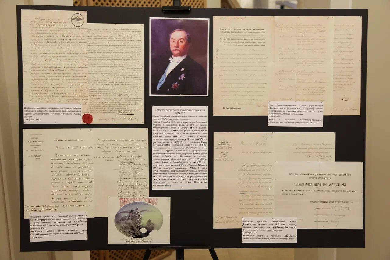 Гостям также была представлена выставка документов из Архива внешней политики Российской империи о деятельности А.Б.Лобанова-Ростовского, которую подготовил Историко-документальный департамент МИД России.