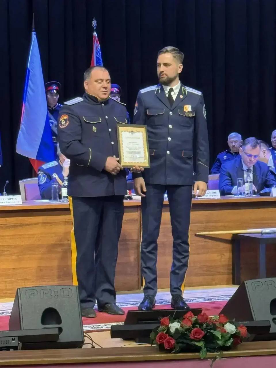 По поручению главы Астраханской области Игоря Бабушкина заместитель руководителя администрации главы региона, первый заместитель атамана Астраханского окружного казачьего общества Всевеликого войска Донского Егор Угаров вручил почетную грамоту заместителю атамана по вопросам сопровождения казаков – участников СВО Михаилу Заплавнову за большой вклад в развитие казачества. Михаил – ветеран СВО и финалист региональной кадровой программы «Победоносец».