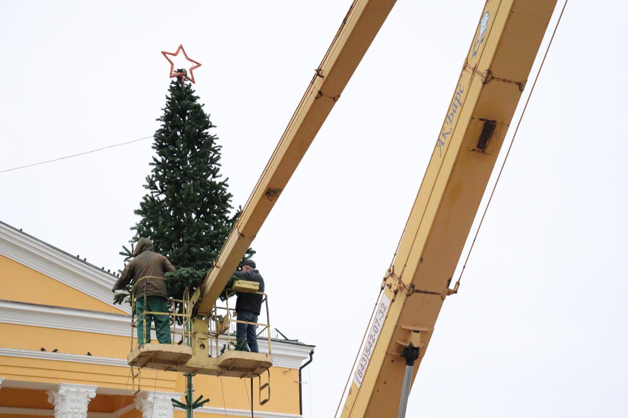 В Ахтубинске специалисты приступили к монтажу городской ёлки на площади Ленина.