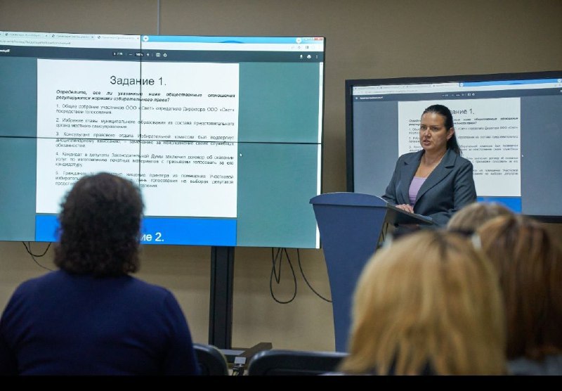 На этот раз педагогам городских школ была предоставлена уникальная возможность участвовать в интерактивном диалоге с Екатериной Усовой, доцентом кафедры государственно-правовых дисциплин и международного права Астраханского государственного университета им. В.Н. Татищева, кандидатом политических наук. Она поделилась секретами проведения увлекательных уроков по теме «Избирательное право», освещая важность данной дисциплины для формирования активной гражданской позиции у молодежи.