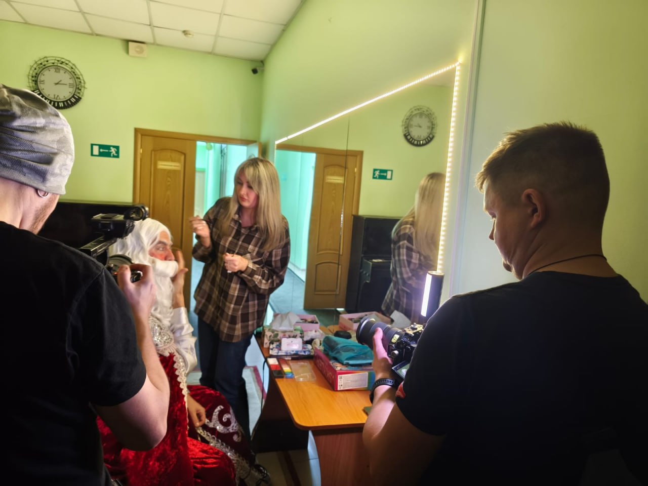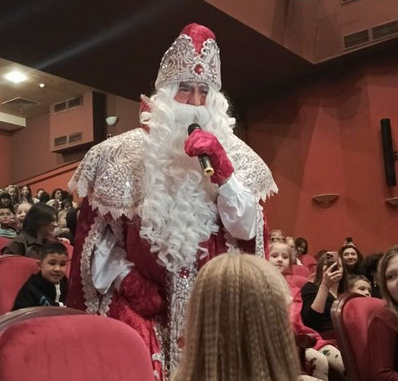 После спектакля Дмитрий в костюме Деда Мороза пообщался с ребятами и раздал им сладости