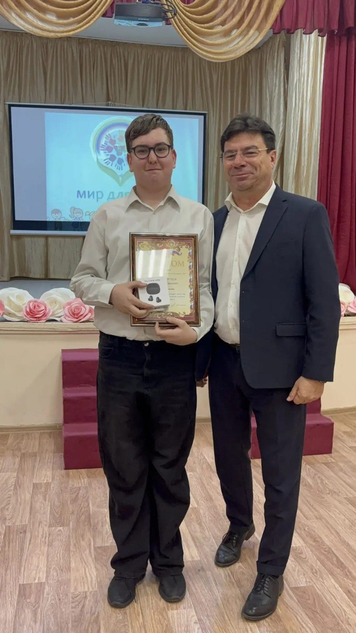 Председатель избирательной комиссии Астраханской области Владимир Золотокопов поздравил воспитанников с международным днем инвалидов и вручил призы лауреату и победителю областного творческого конкурса «Мой выбор».